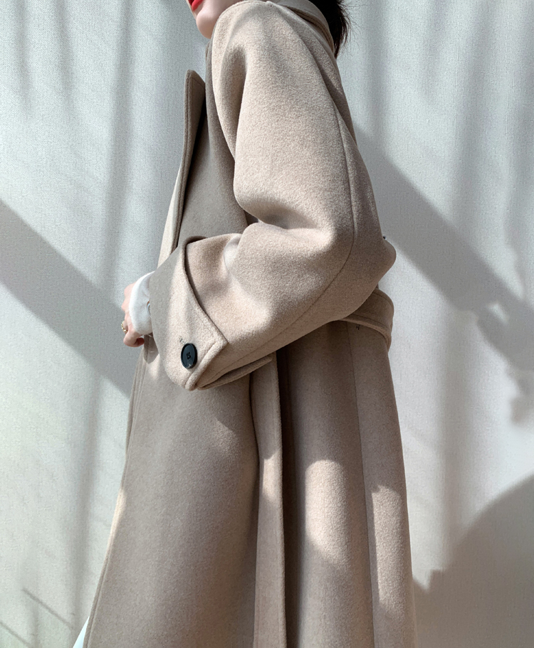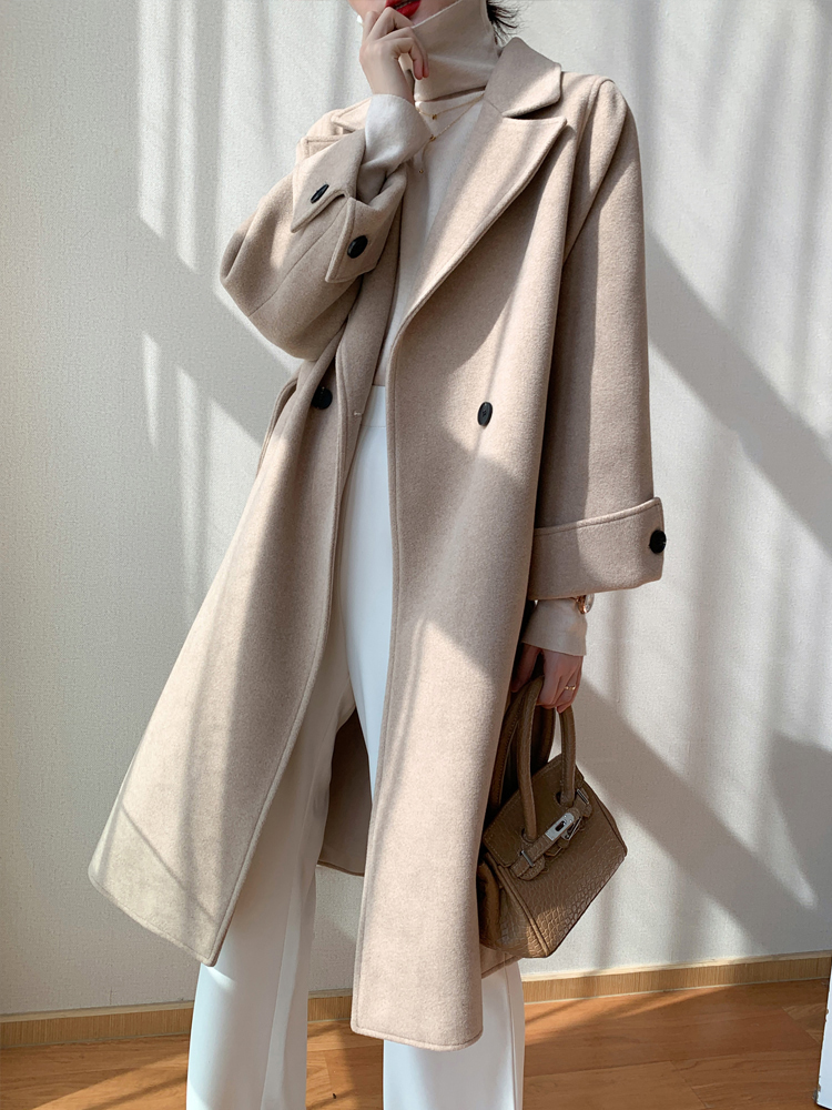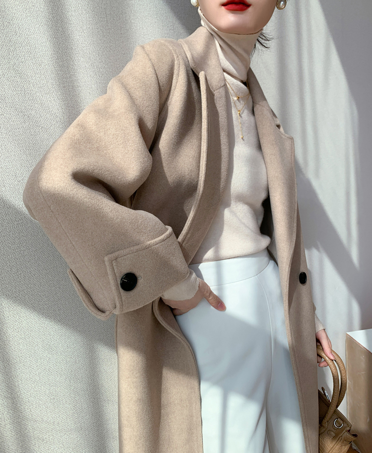 Women Wheat Long Wool Coat Wrap Wool Coat Office lady Woolen Coat Winter Coat Outerwear #1128