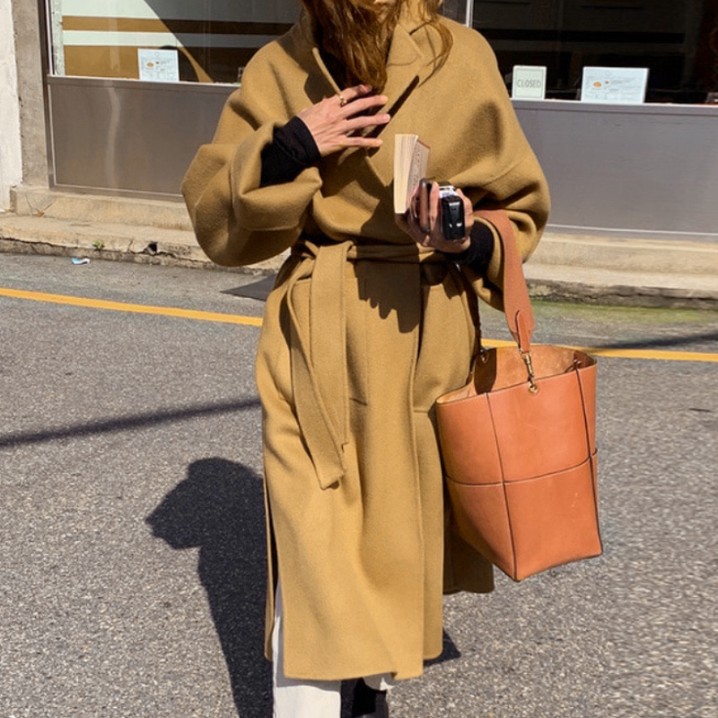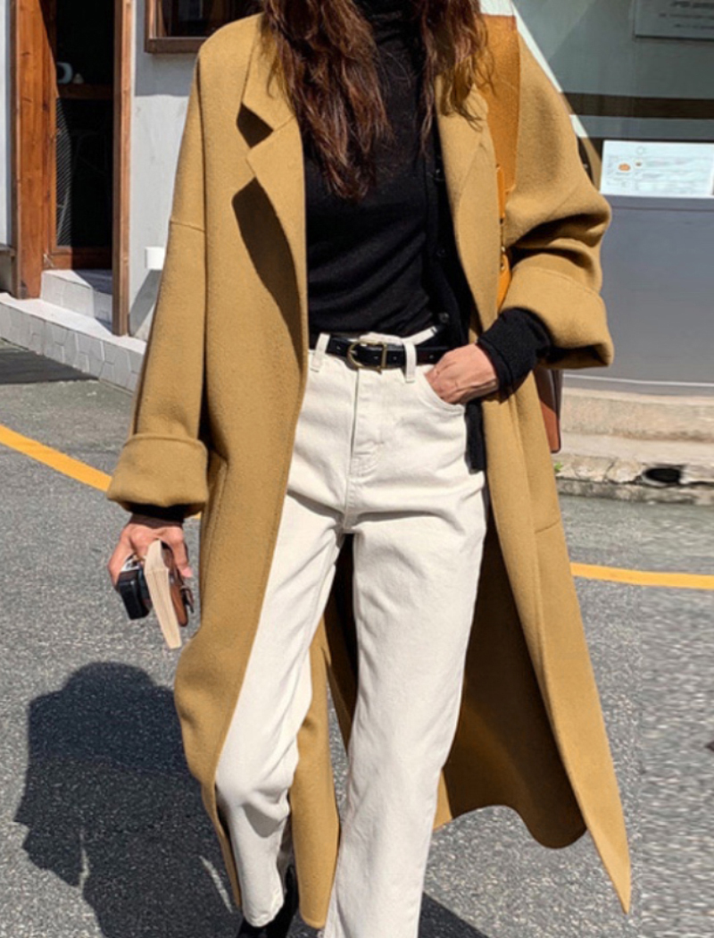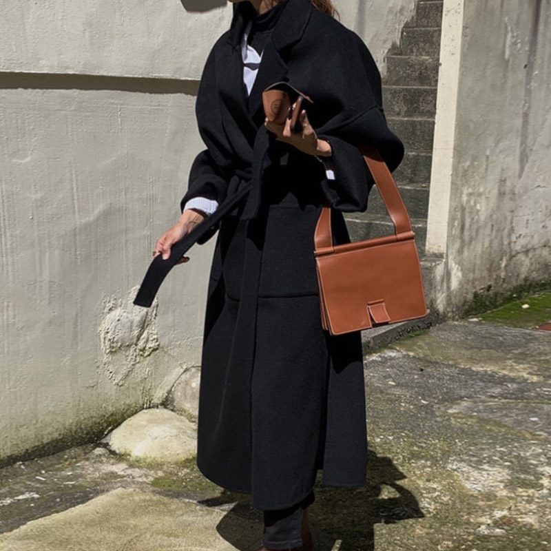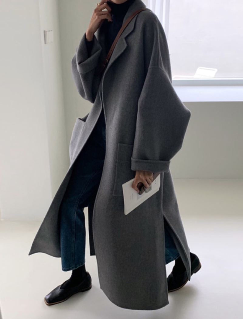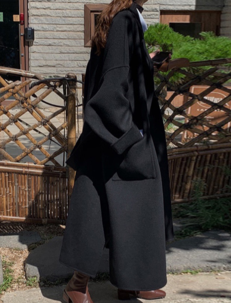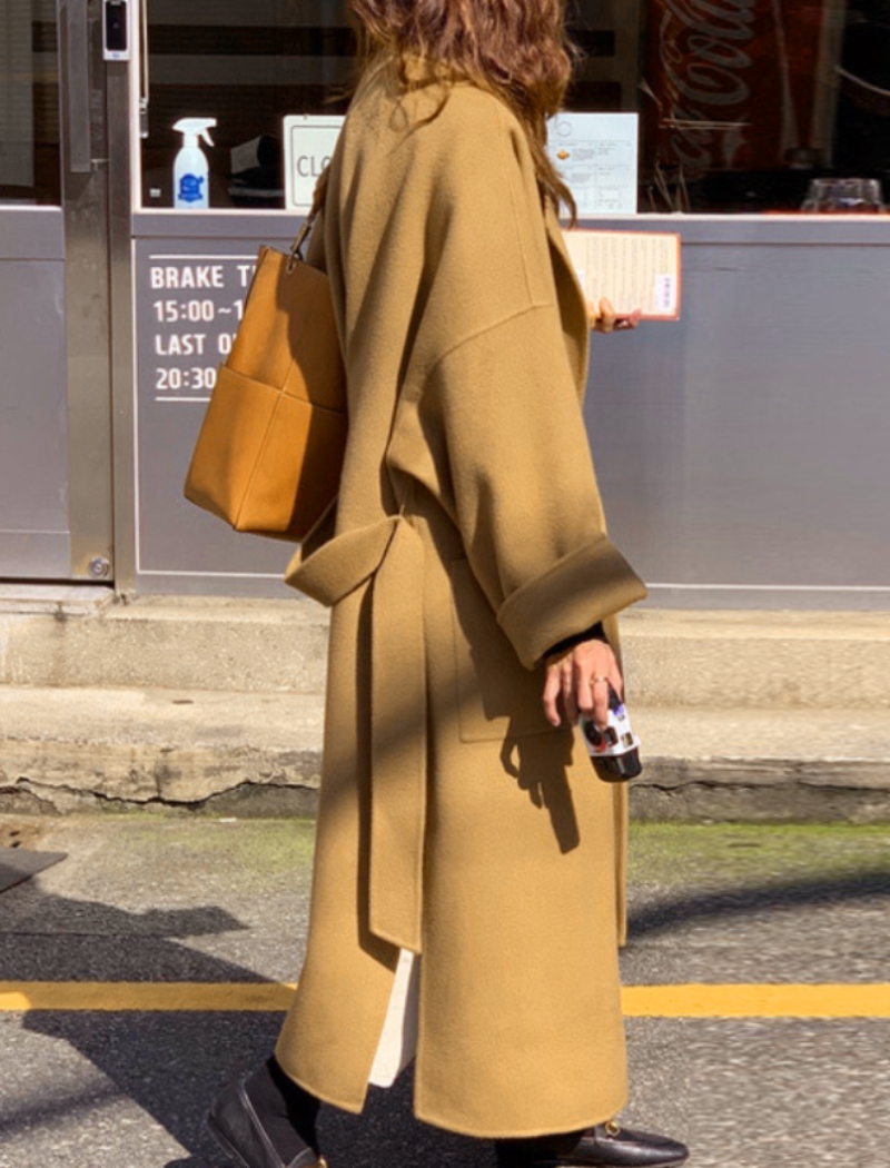 Women Solid Long Wool Coat With Belt Camel Long Coat Black Loose wool Coat Female overcoat Grey Wool Coat Autumn Winter Coat Outerwear #1134