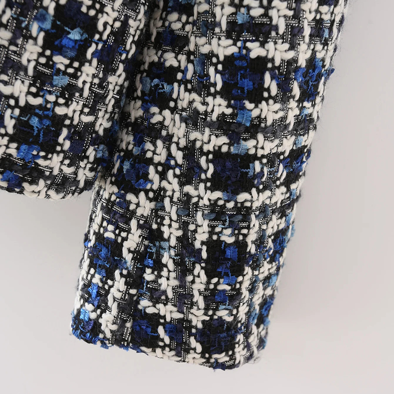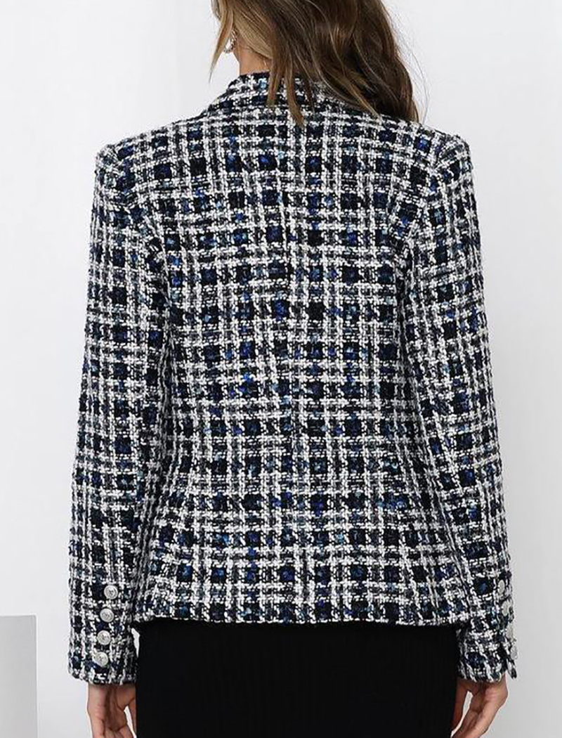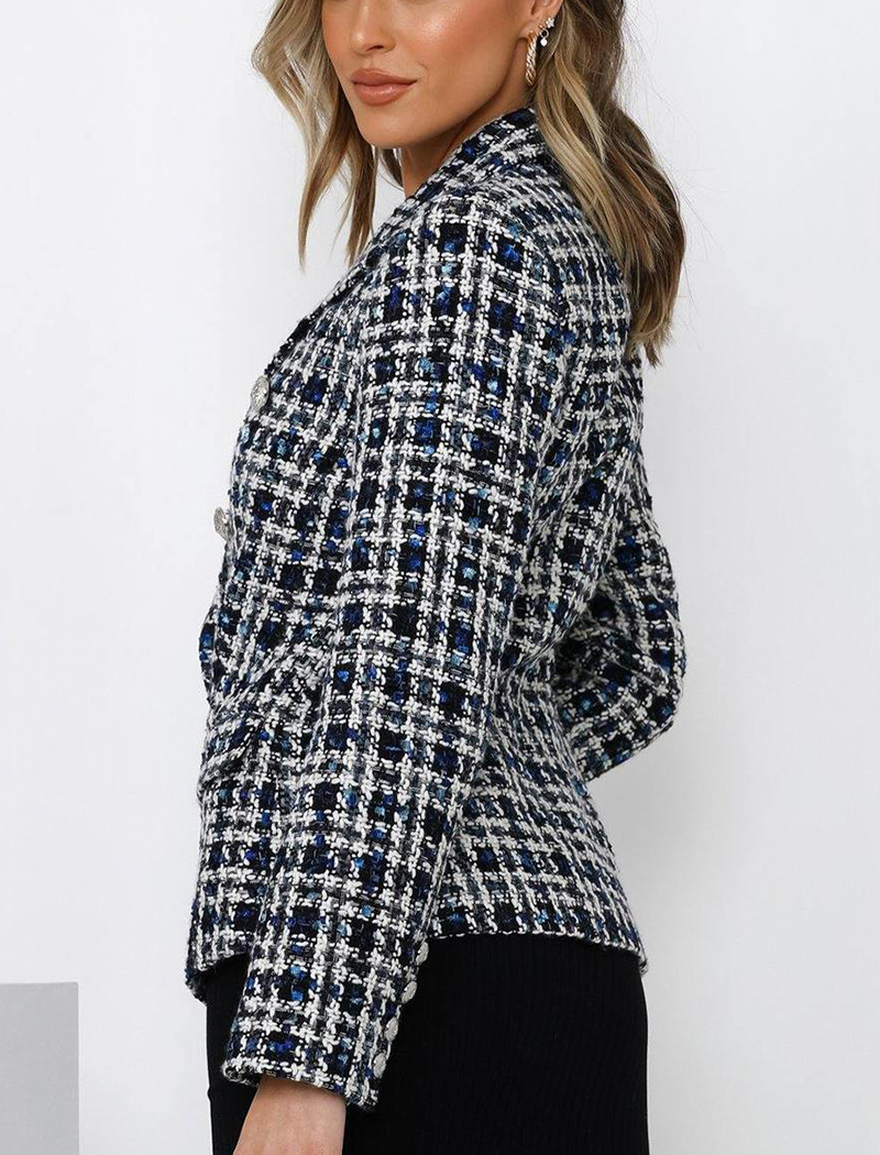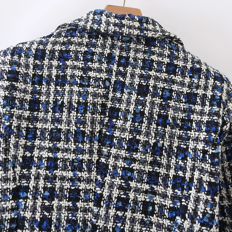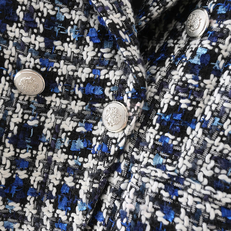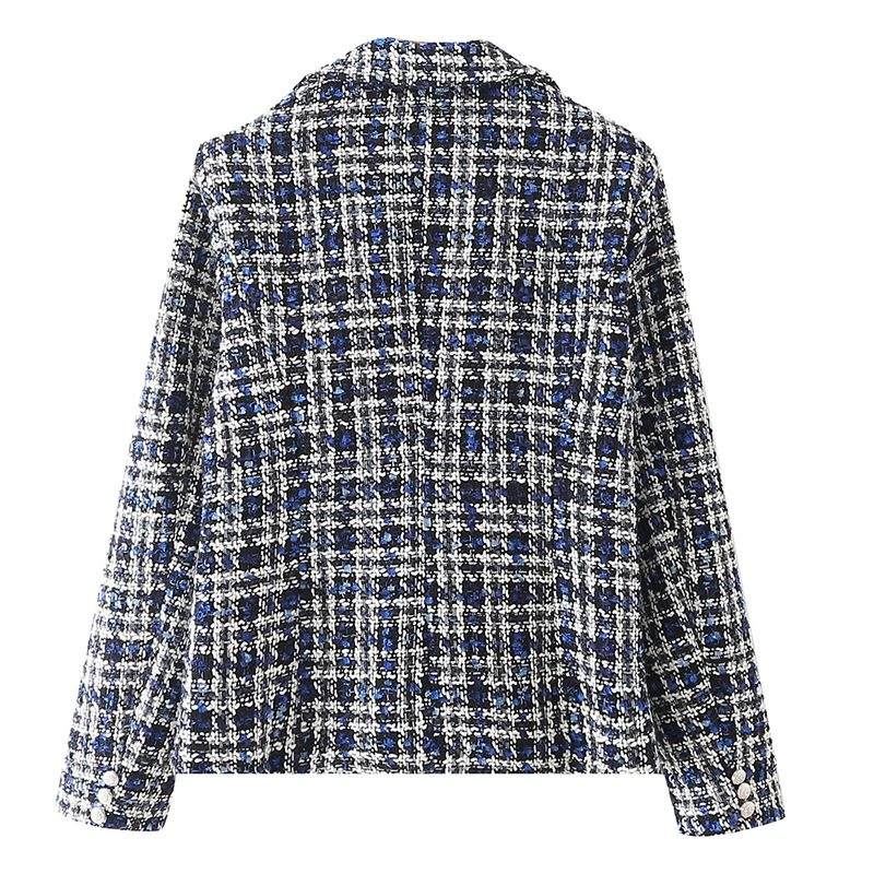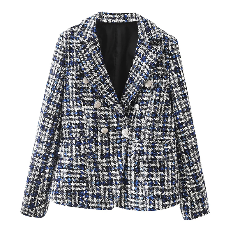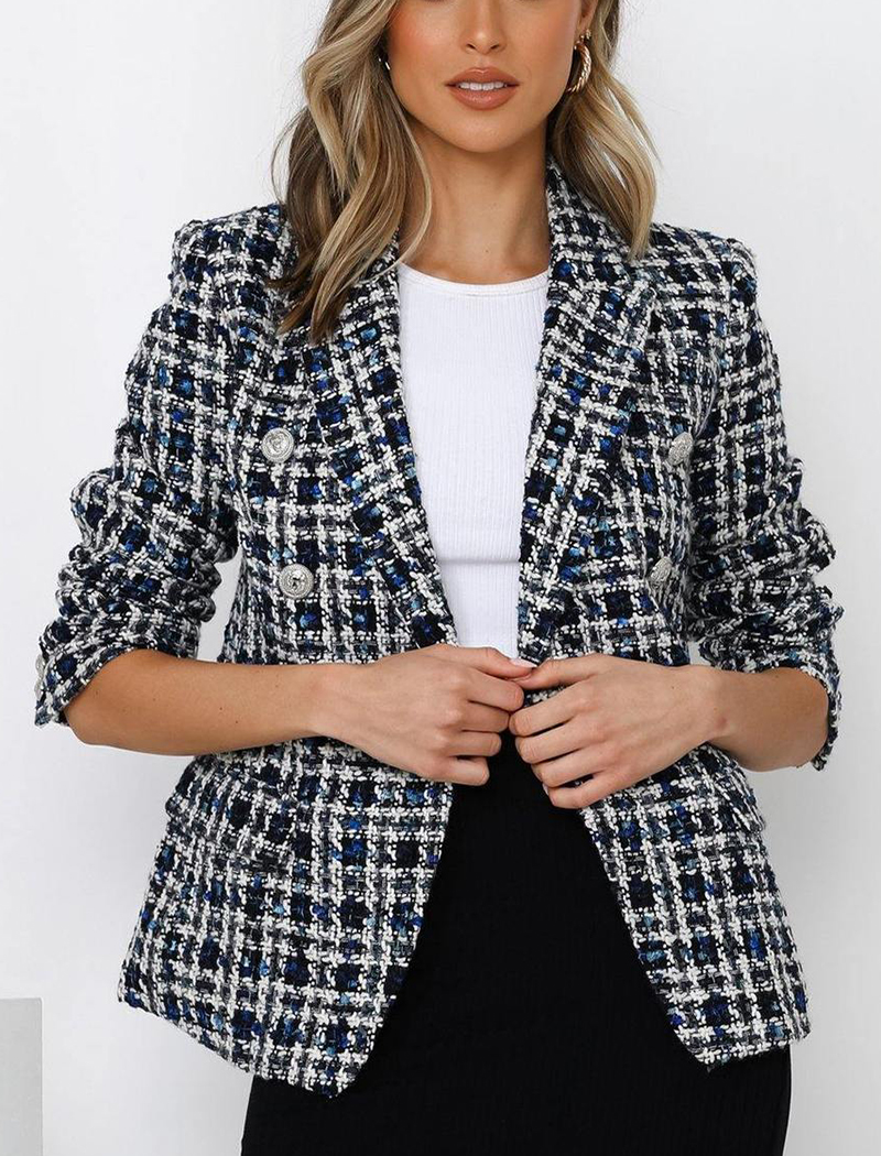 Women Houndstooth Tweed Blazer Coat Autumn Winter Suits Elegant Double Breasted Coats Office Lady Tweed Jacket Outerwear #1171