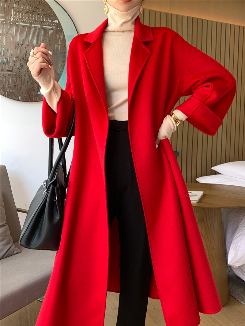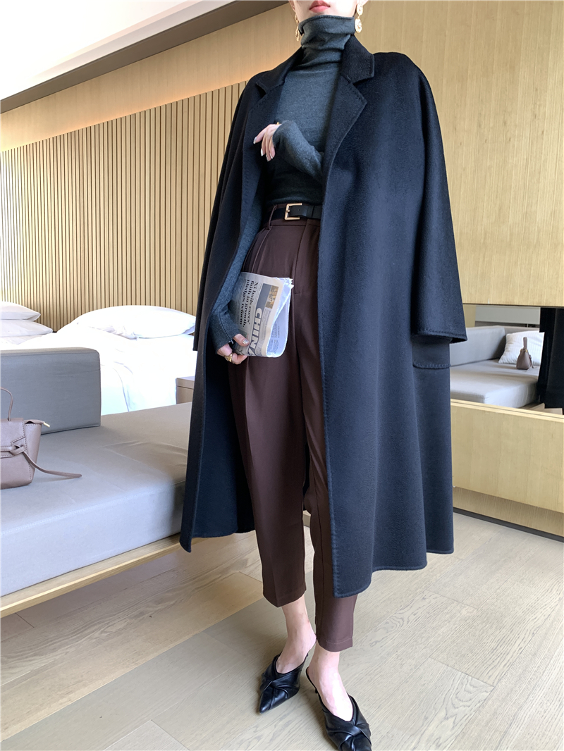 Women water ripple double Faced Wool cashmere coat,Wool Long Coat,Wool Overcoat #1001