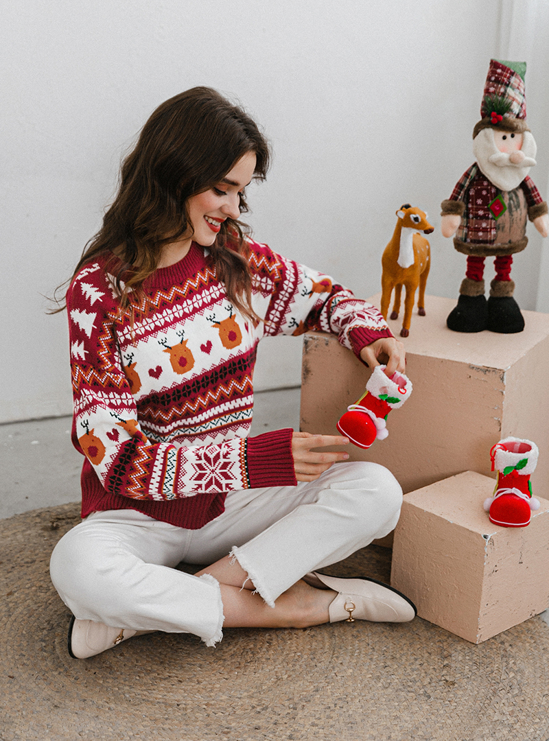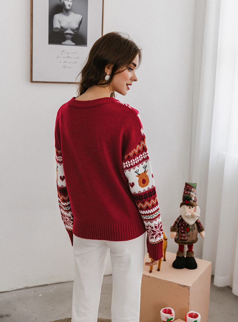Christmas red long sleeve women casual sweater autumn winter Animal design female pullover Fashion knitted sweater tops #1008