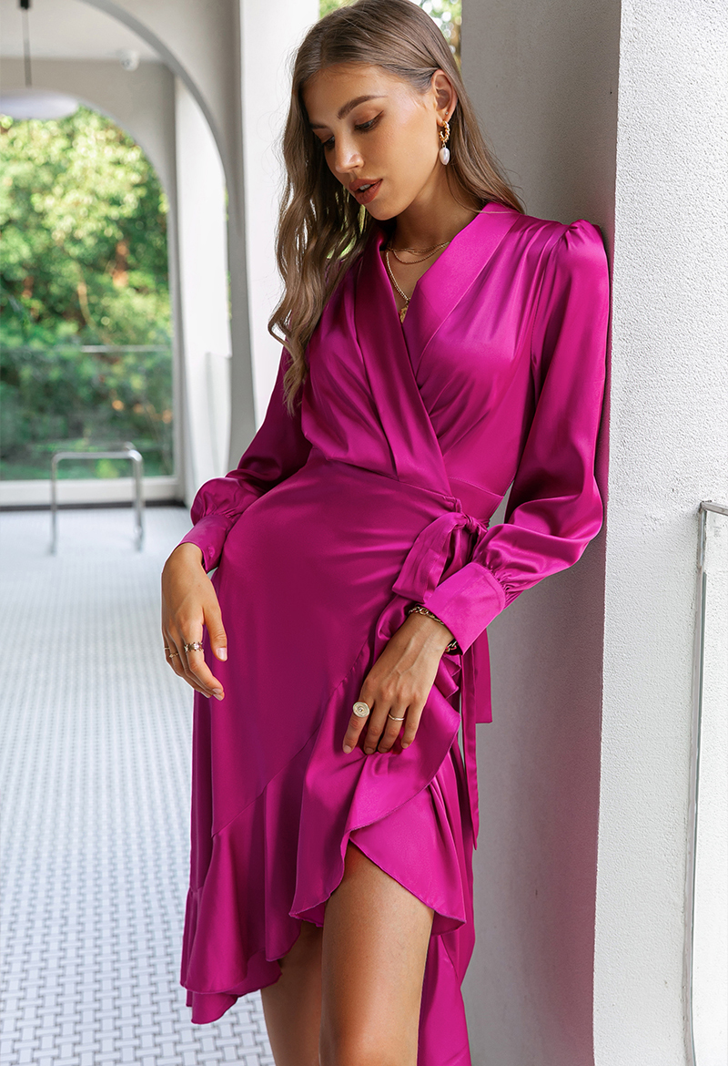 Purple lantern sleeves v-neck lace up dress A-line Formal Dress ruffle maxi dress Sash female office Long Midi Dress #1014