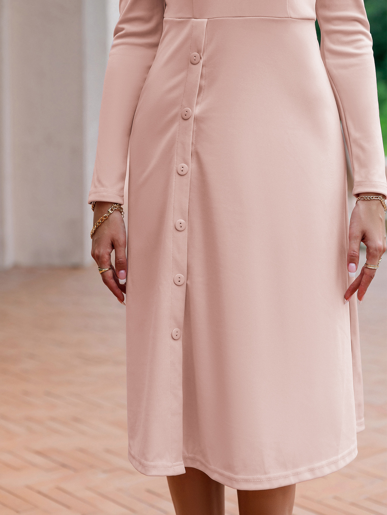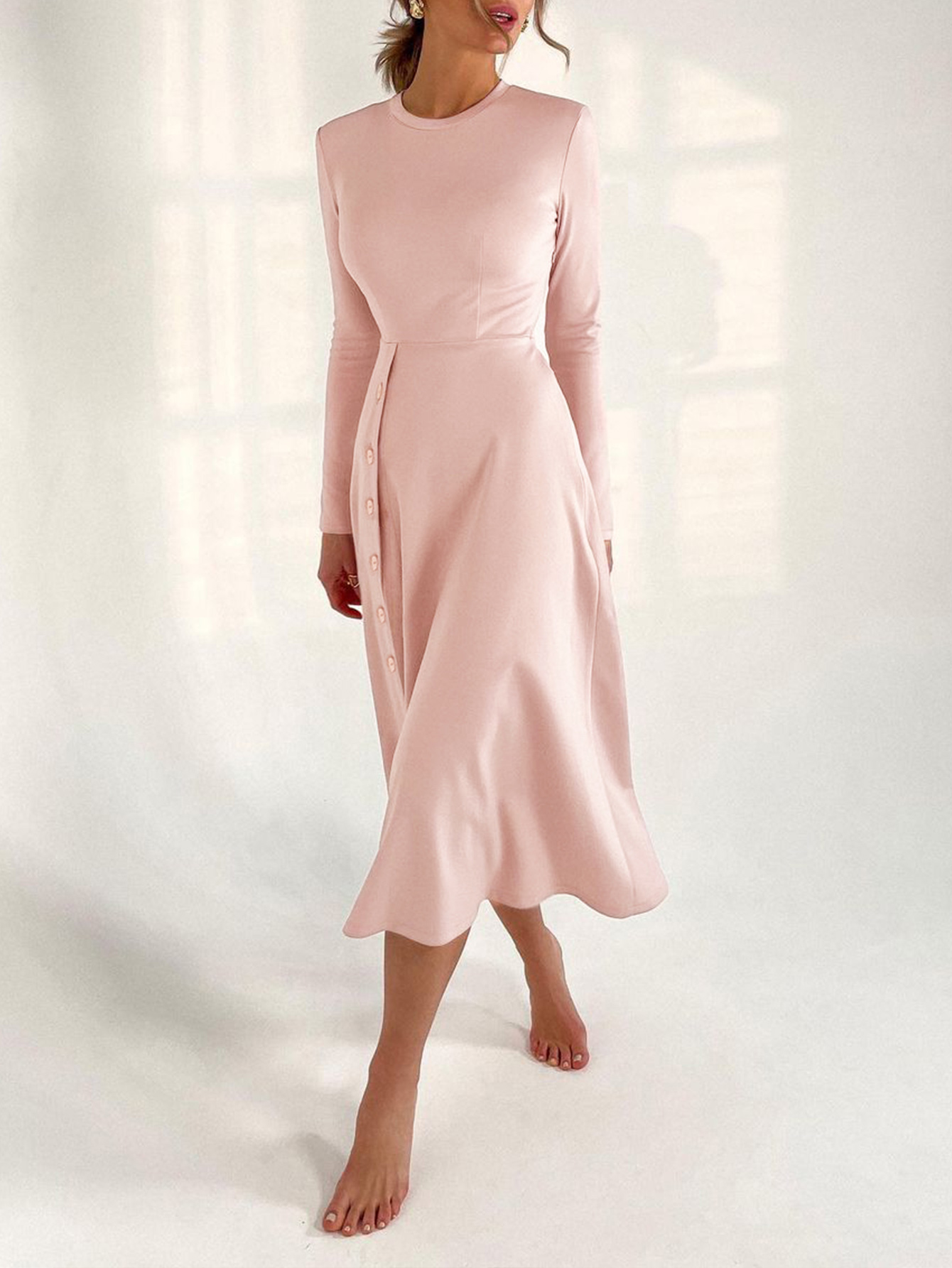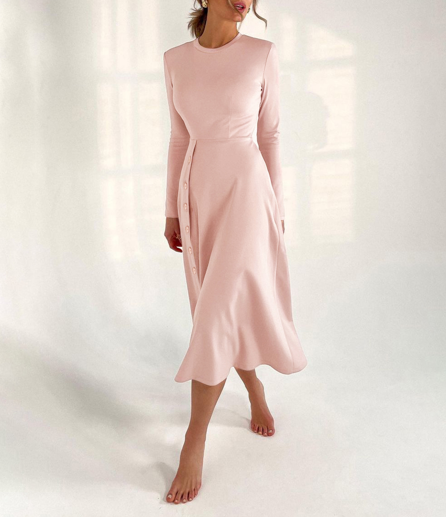 Women pink Maxi Dress Office lady Long Sleeve slim midi Dress A-line solid female dress Formal dress #1016