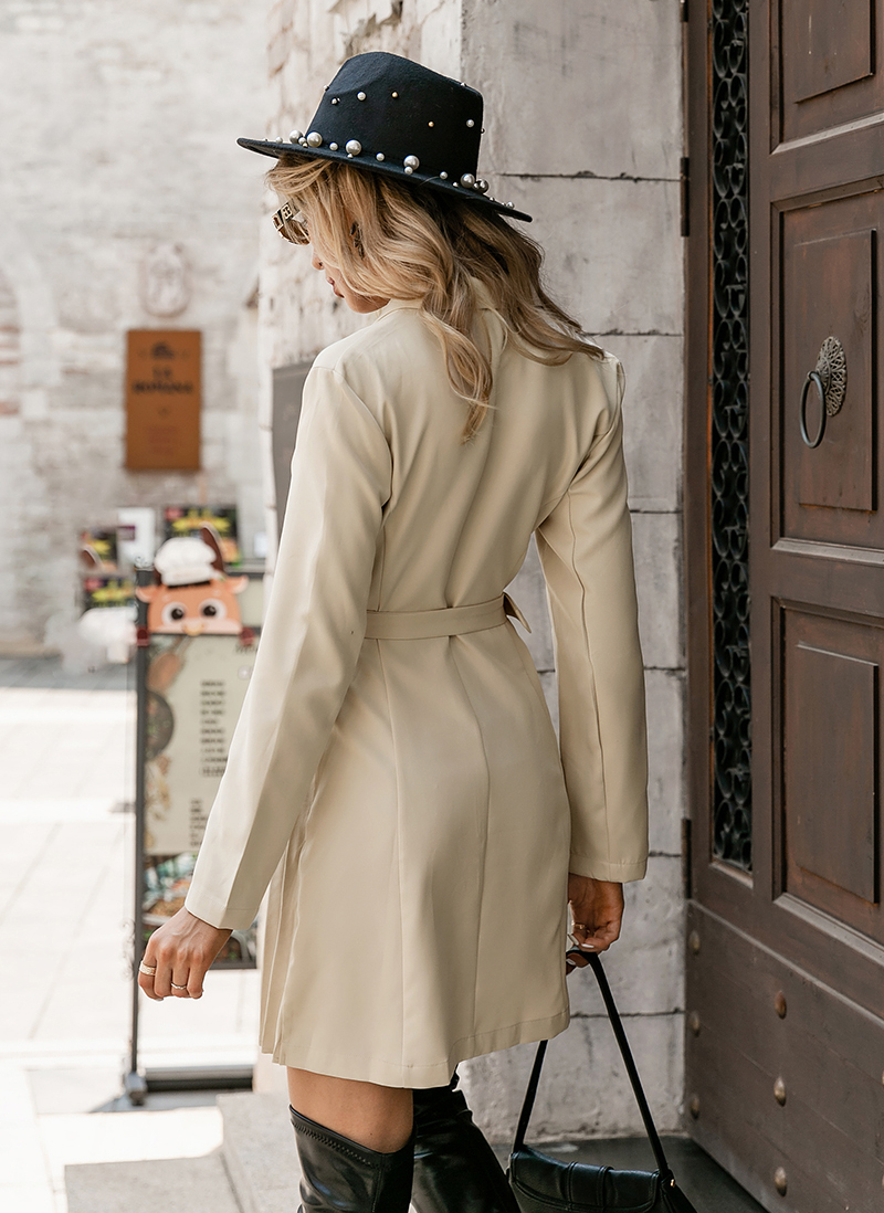 Women pleated Blazer Dress Autumn Trench Dress women belt Dress Office Lady notched Suit mini Dress Fall blazer dress #1019