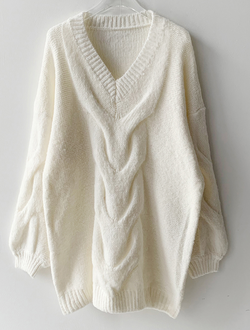 Women v-neck lantern sleeves knitted dress Casual loose sweater dresses Autumn thick sweaters knitted sweaters Chunky sweater #1020