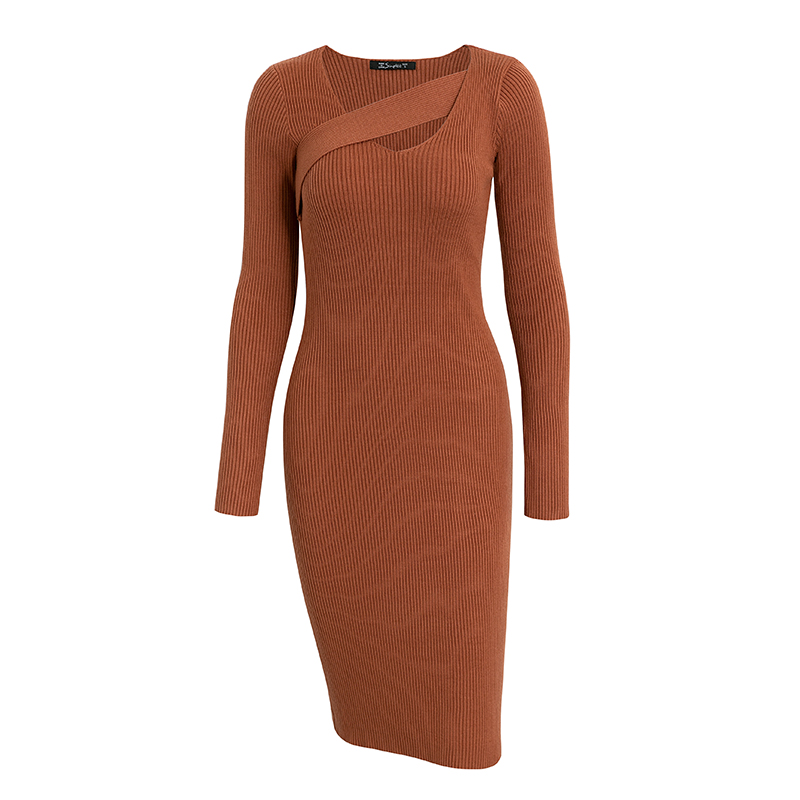 Women hollow out v-neck split knitted dress Office Lady Sweater Dress Business Attire Sexy Office Wear Fitted Knitted Midi Dress Pink Dress #1023