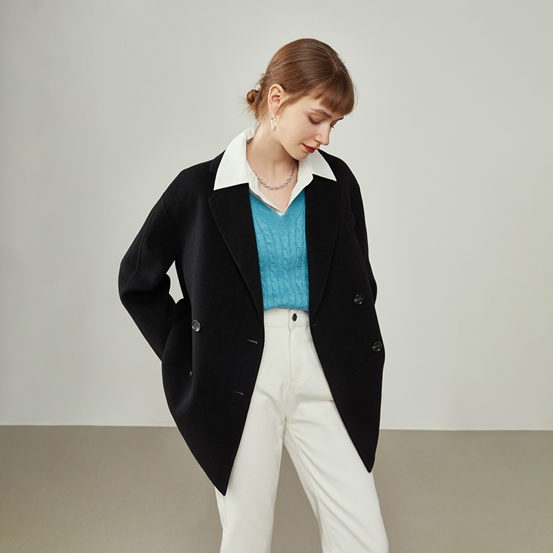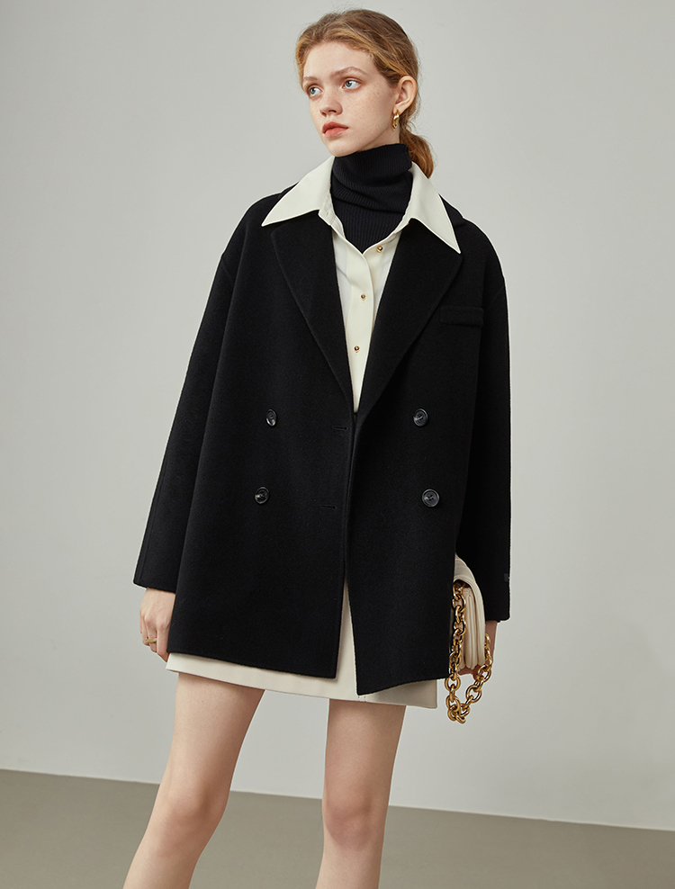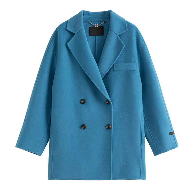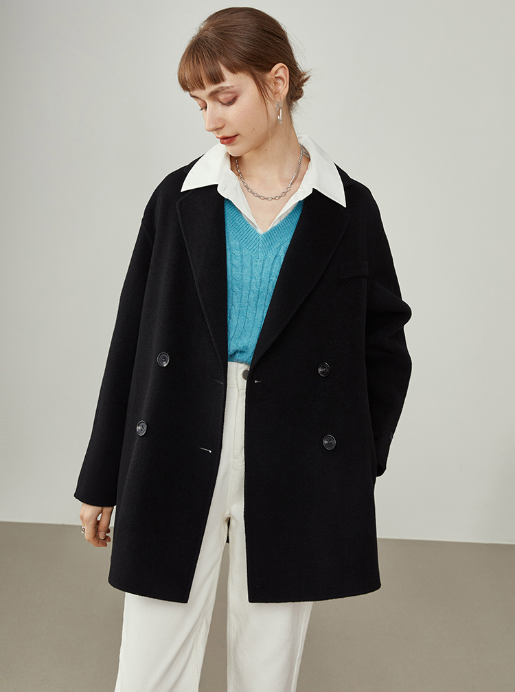 Women Blue Double-faced Wool Coat Oversize Mid-length Wool Jacket Loose Black Wool Coat Women's Outerwear winter coat #1037