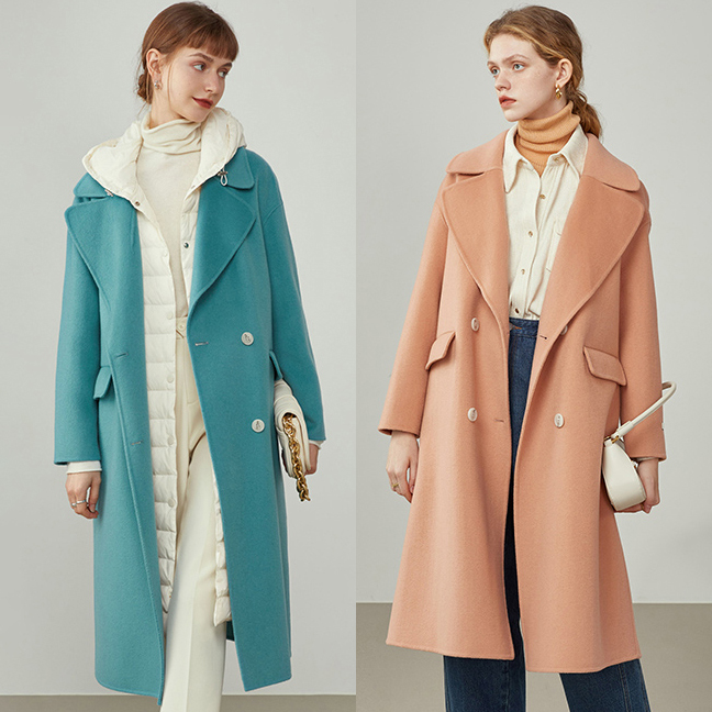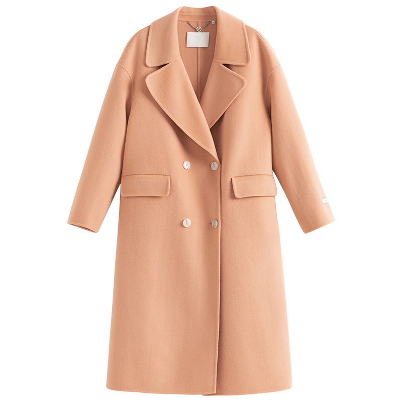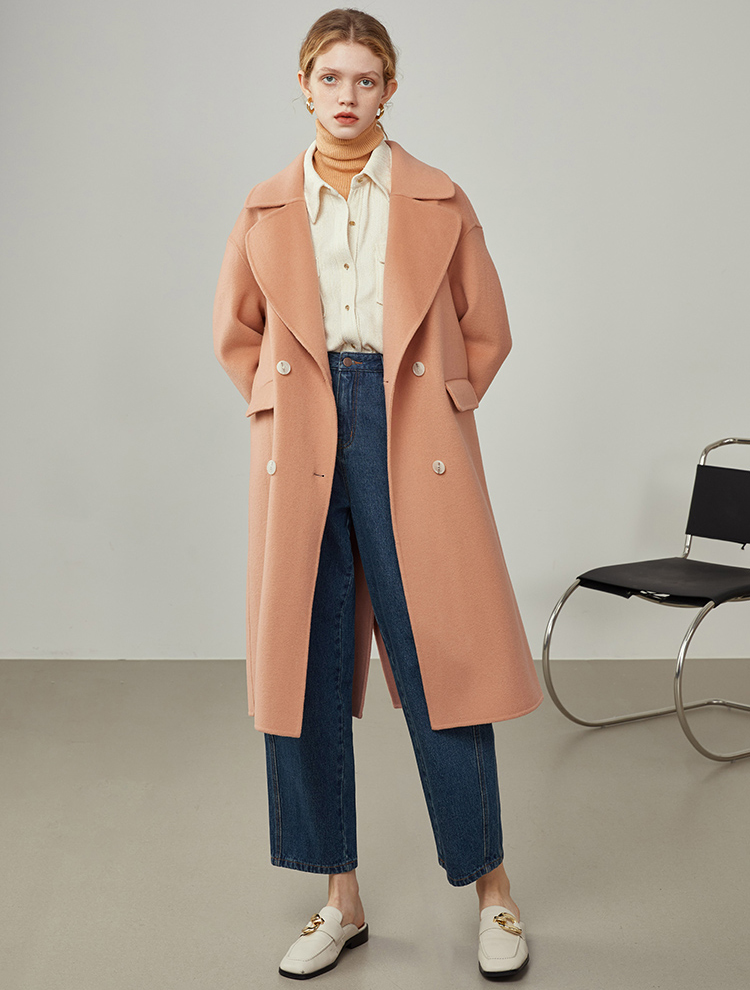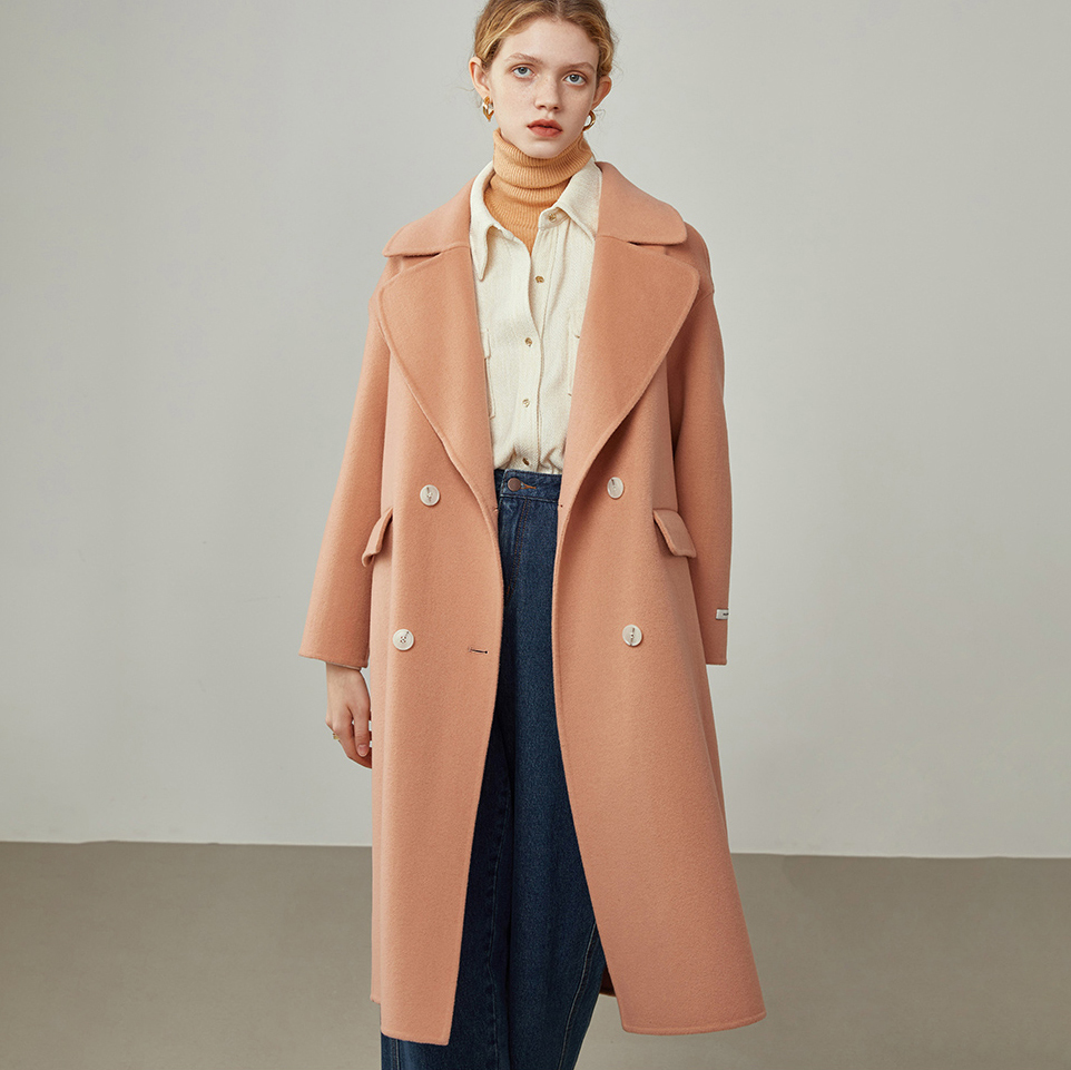 Women Pink 100% Pure Wool Tweed Coat Double-faced Wool Coat Oversize Wool Overcoat Loose Wool Coat Women's Outerwear winter coat #1039