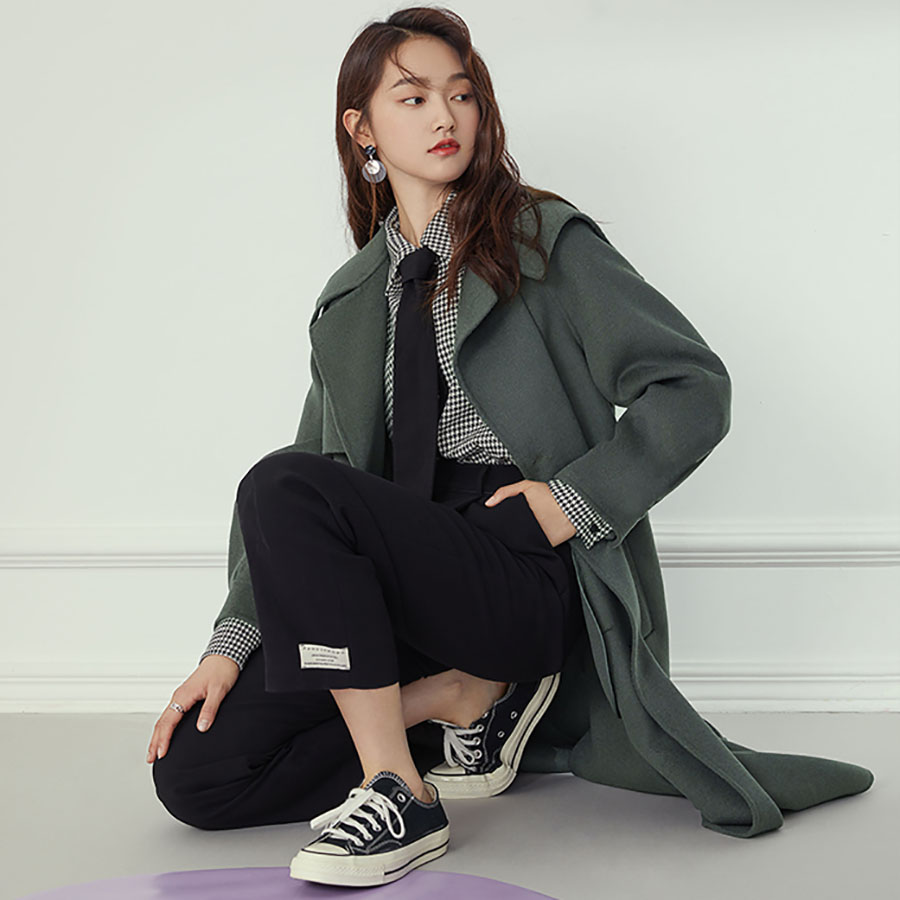 Women Wool Long Coat Double-faced Wool Coat Warm Winter Wool Overcoat Loose Long Wool Coat Women winter coat #1041