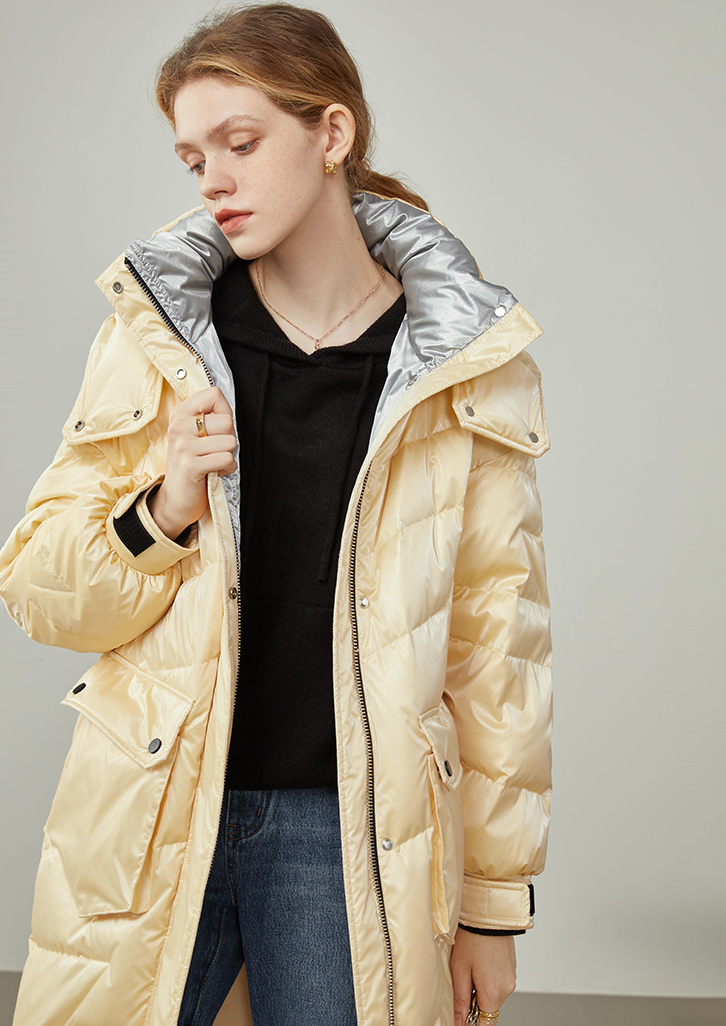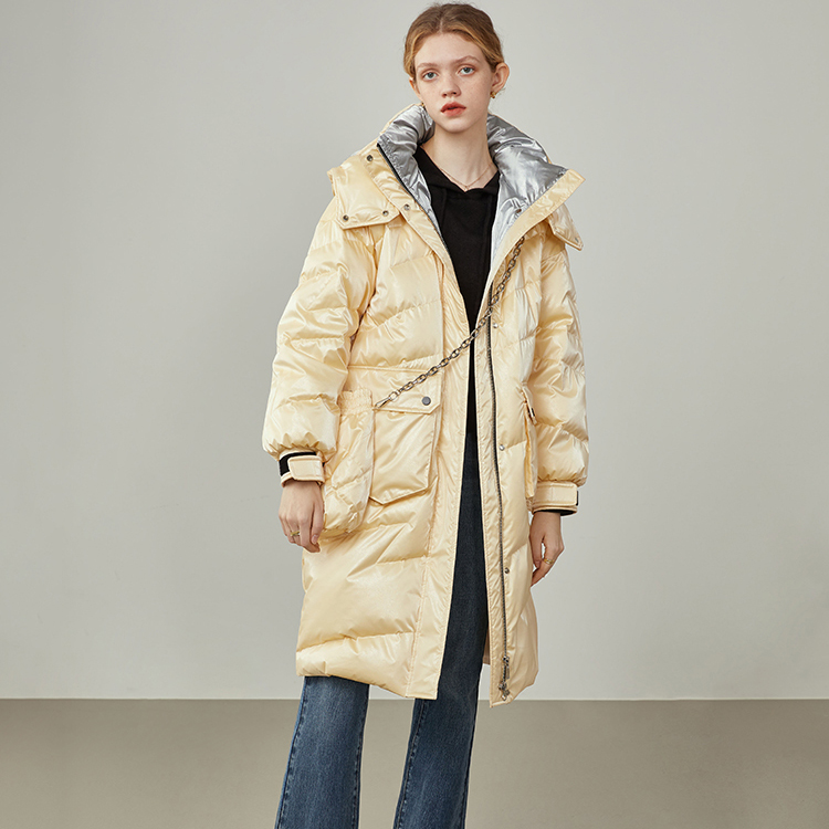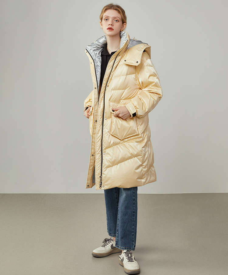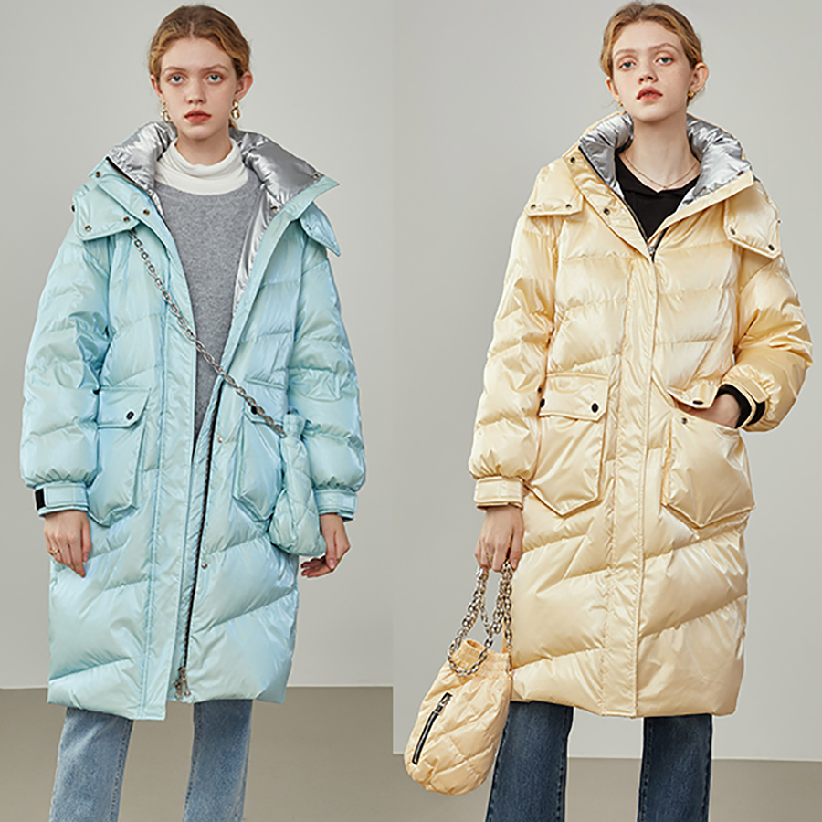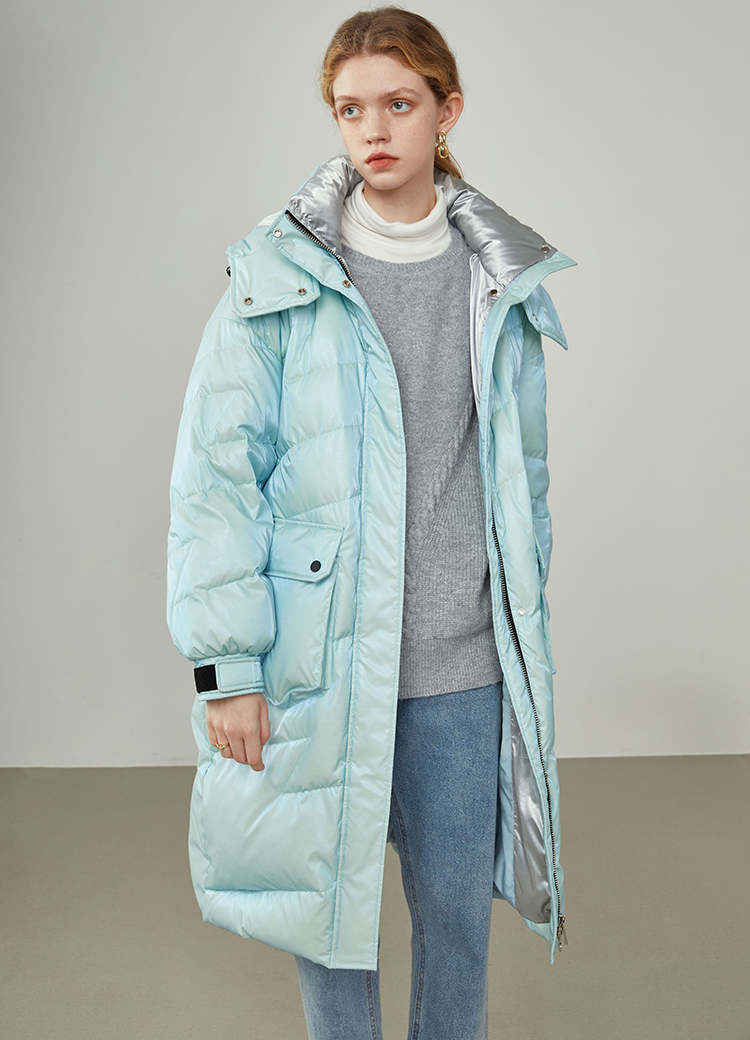 Women Mid-length Yellow Shiny Down Coat Casual Quilted Down Puffer Padded Coat winter coat Hooded Quilted Down Coat women's Blue Down jacket #1045