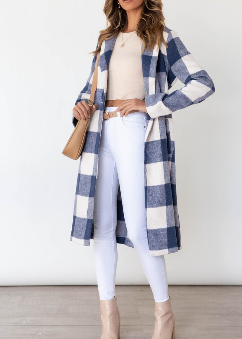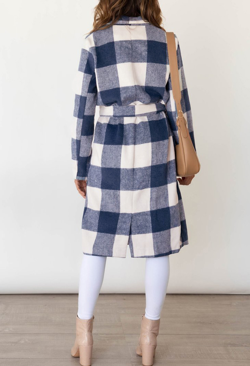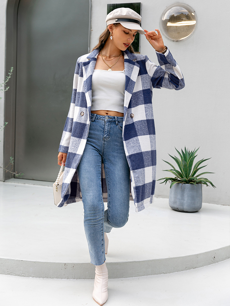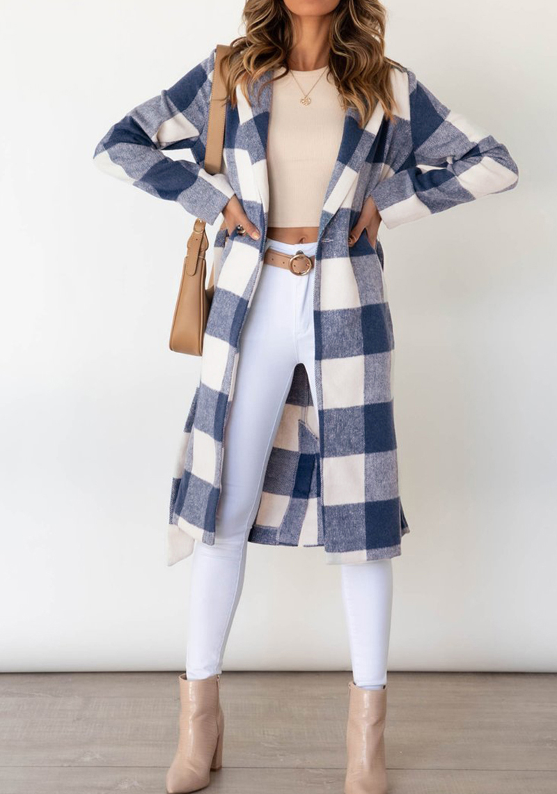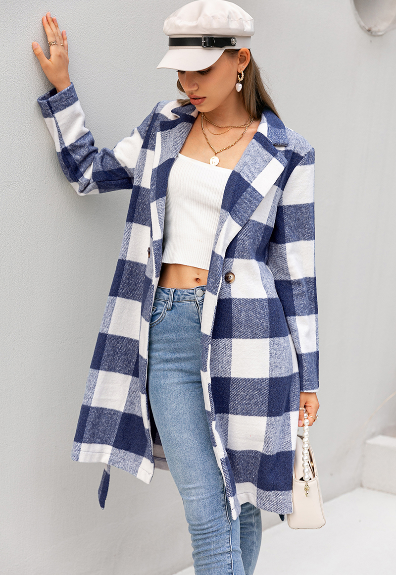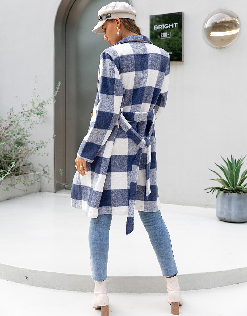 Women plaid Trench Coat Autumn long sleeves maxi coat Women Buttons straight outwear Female belt coats Fall Coat Women #1052