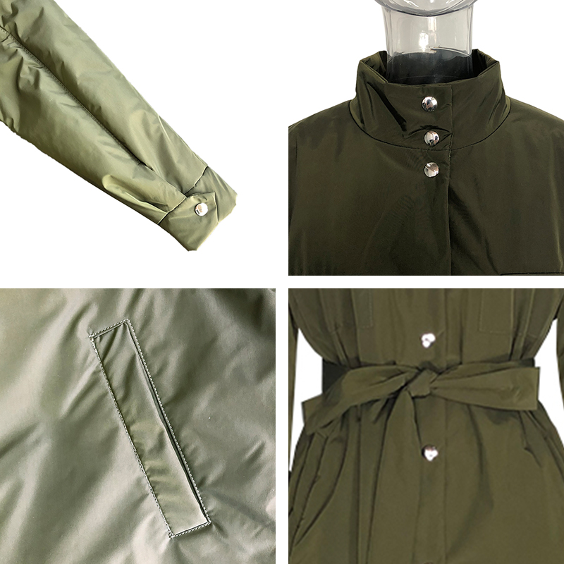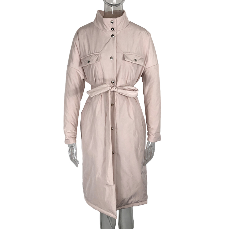 Women Single Breasted Parkas Coat Green Quilted Cotton Padded Coat Lady Stand Collar Long Coat Women Pink Puffer Cotton Jackets Warm Winter Coat #1057