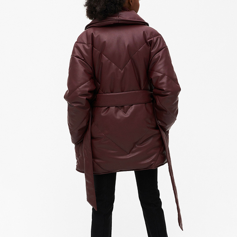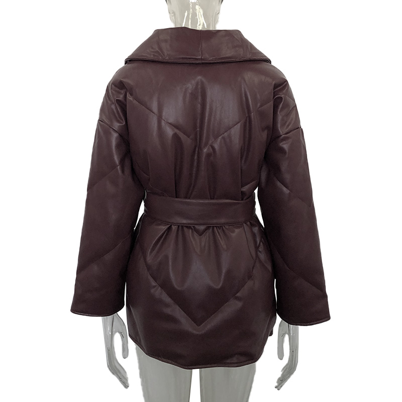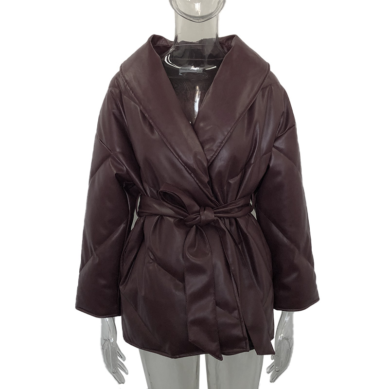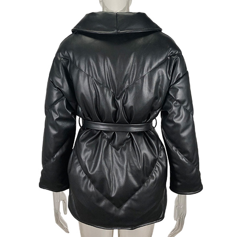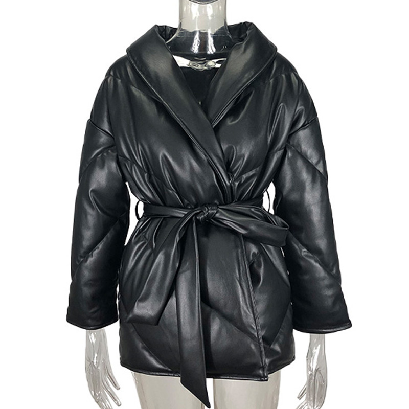 Autumn Winter PU leather Parkas Coat Women Loose Faux Leather Coats Women Belt Quilted Cotton Jackets Warm Winter Coat #1060