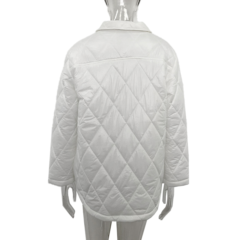 Women Argyle Casual Buttons Parkas Jacket Lady Turn Down Collar Coats Women Elegant Quilted Cotton Jackets Female Quilted Puffer Coat #1063