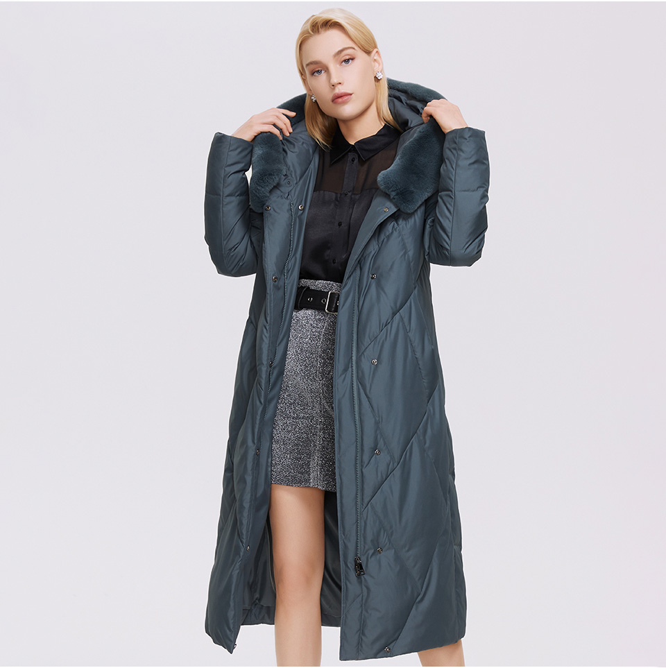 Women Real Rex Rabbit Fur Collar Long Parkas Coat Elegant Quilted Puffer Cotton Jacket Women Winter Long Coat Plus Size Overcoat S-6XL #1068