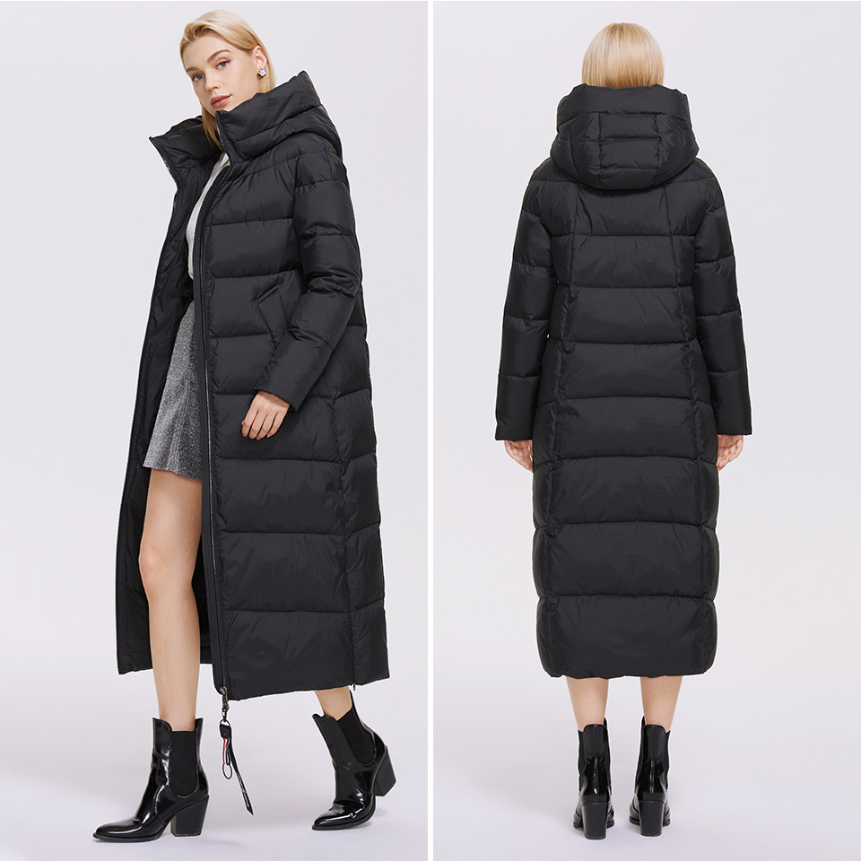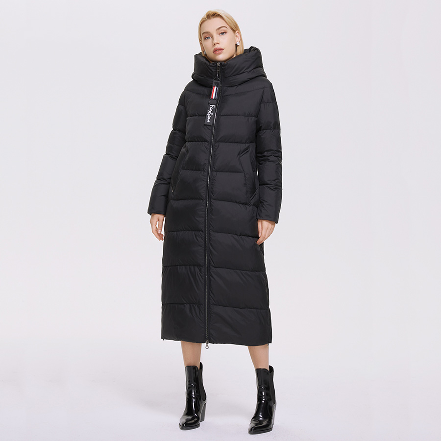Women Black Quilted Puffer Coat Hooded Outwear Long Parka Jacket Super Long Warm Winter Coat Windproof Zipper Cotton Padded Coat Black Long Coat #1077