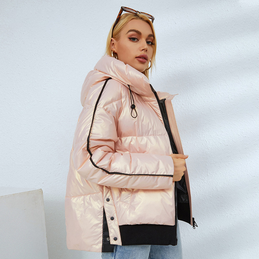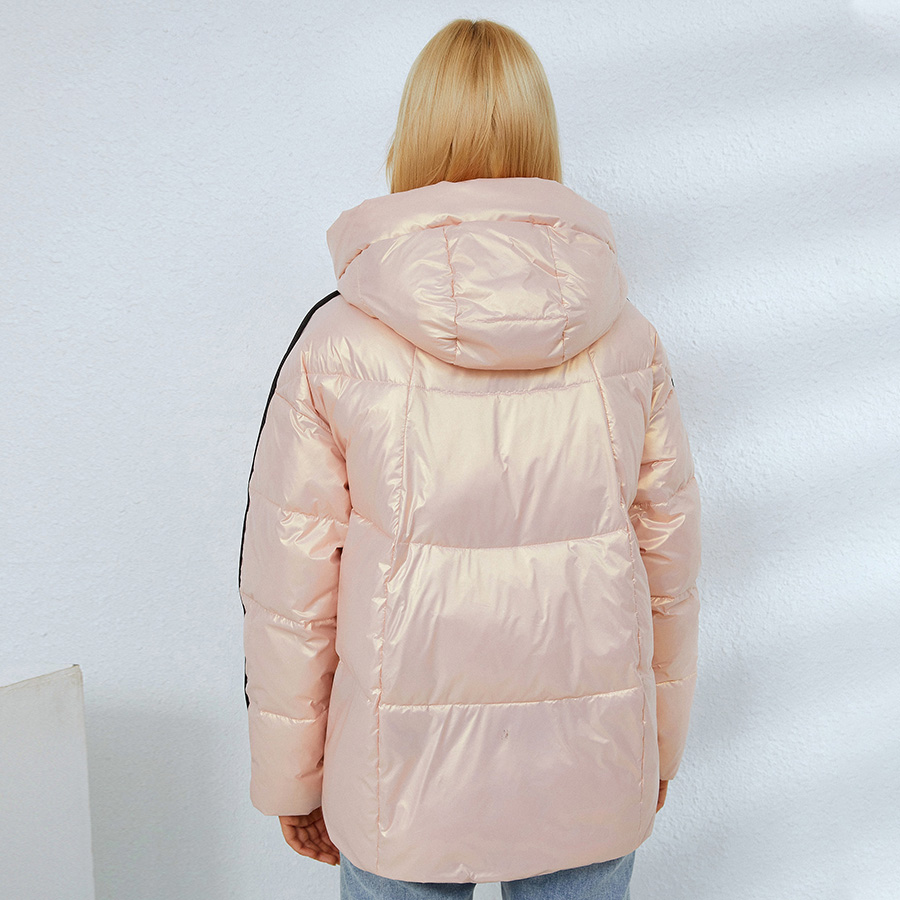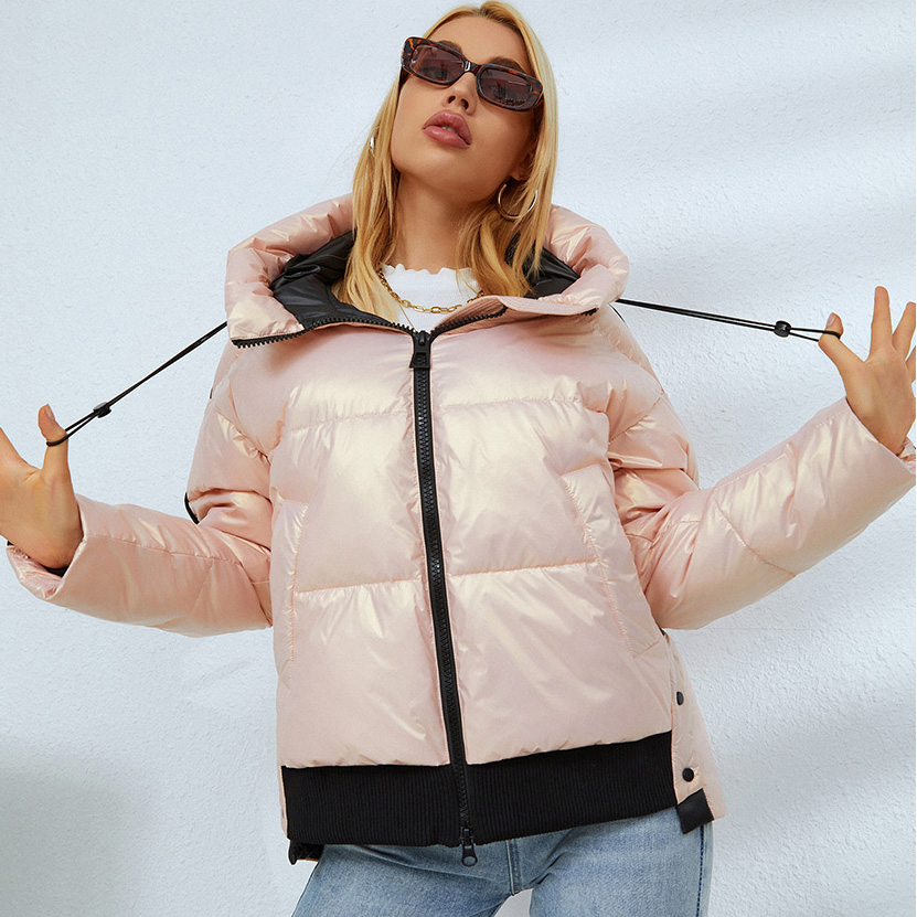 Women Sports Puffer Jacket Pink Quilted Cotton Padded Coat Female Short Parka Jacket Casual Beige Quilted Puffer Cotton Outwear #1078
