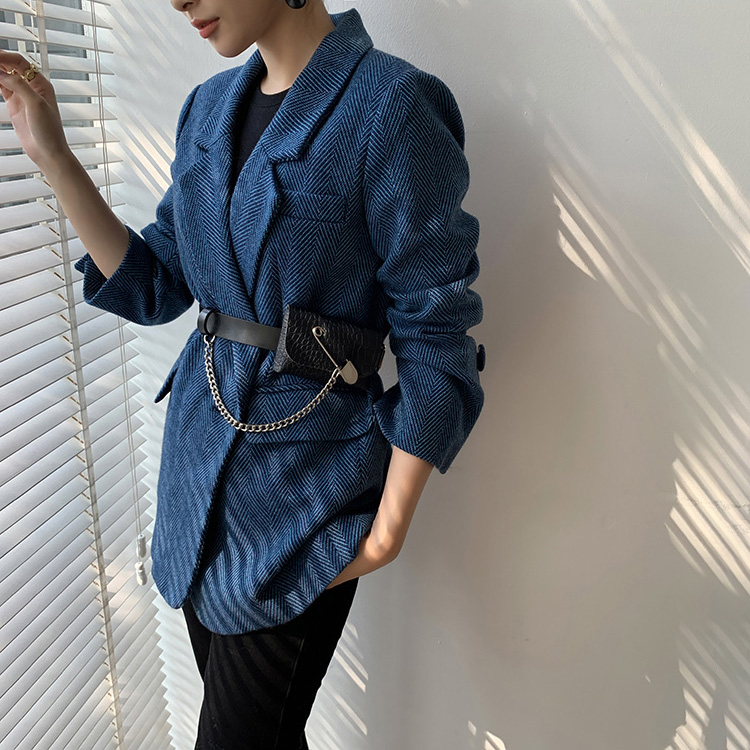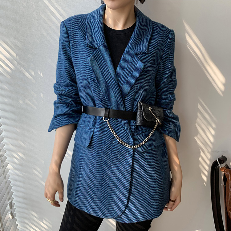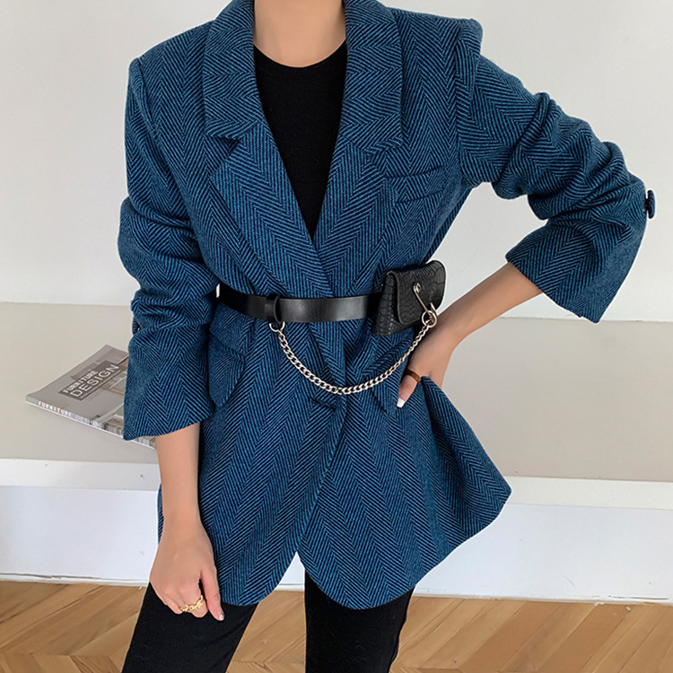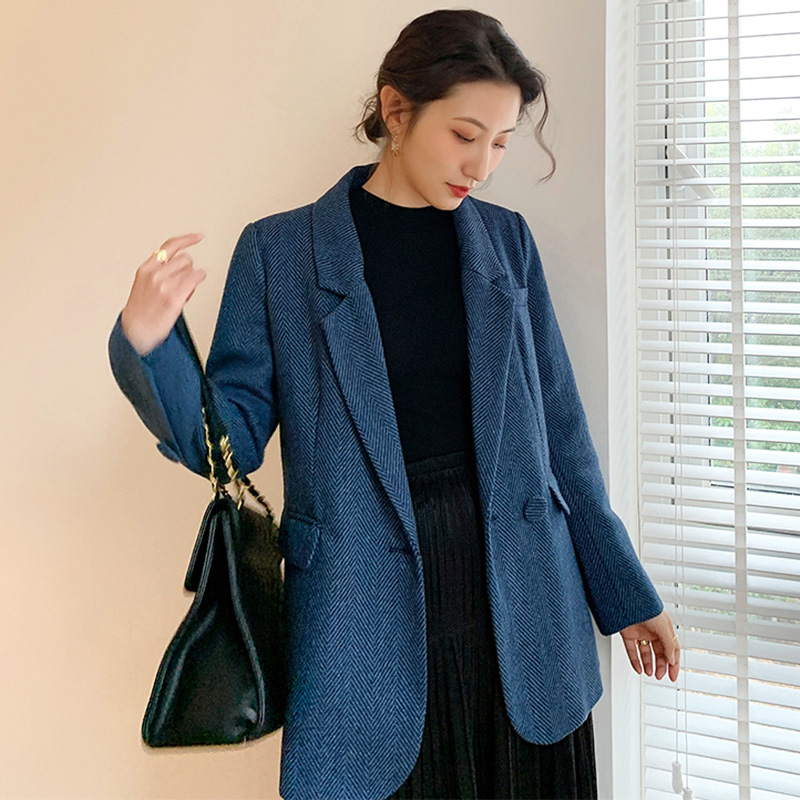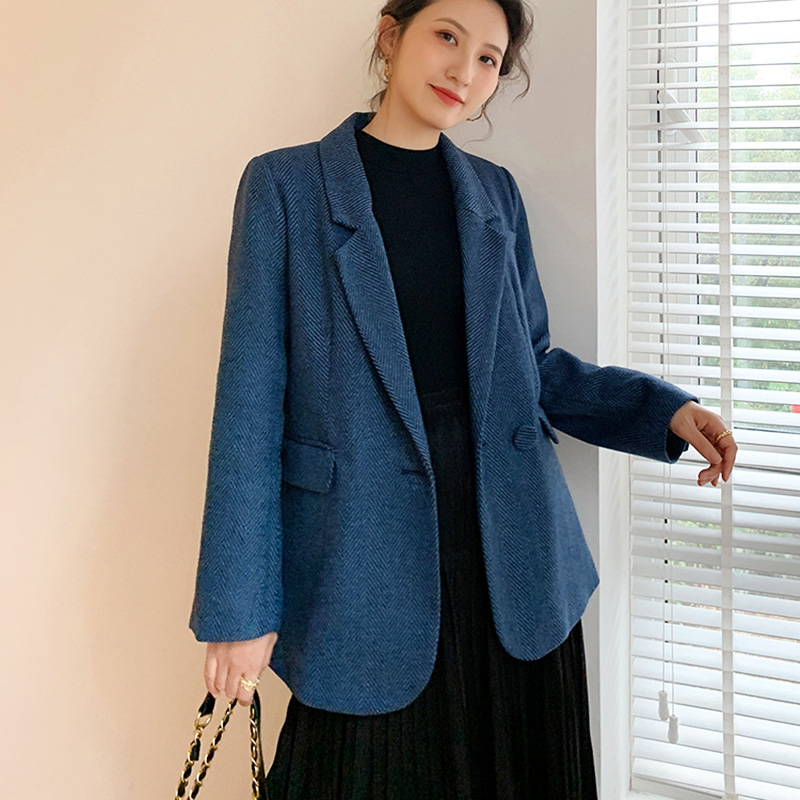 Women Blue Thick Wool Blazer Autumn Woolen Suit Jacket Office Lady Woolen Blend Coat Outwear Female Blazer Coat #1084