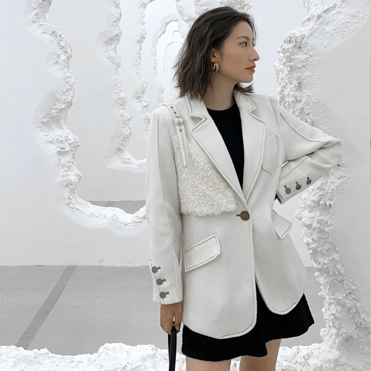 Women Wool Blazer Coat Winter Black Woolen Coat Female Wool Suit Coats Ladies White Wool Blazer Jackets Oversize Wool Blazer#1085