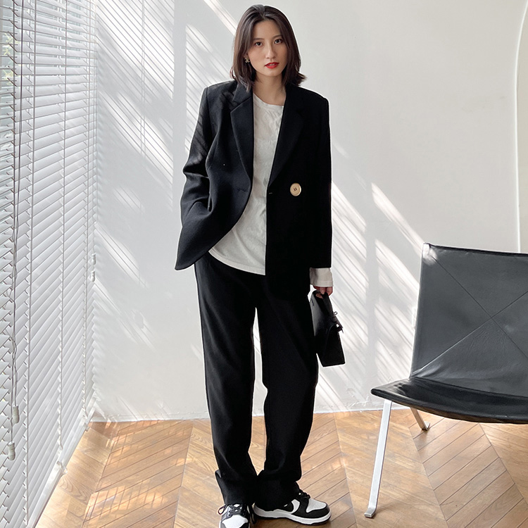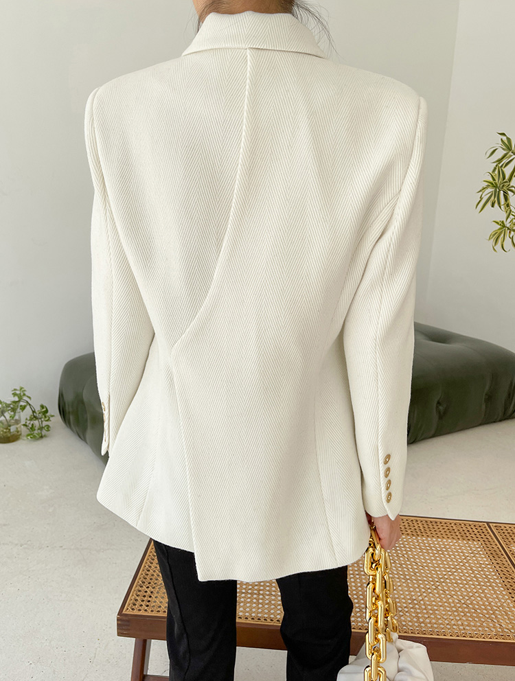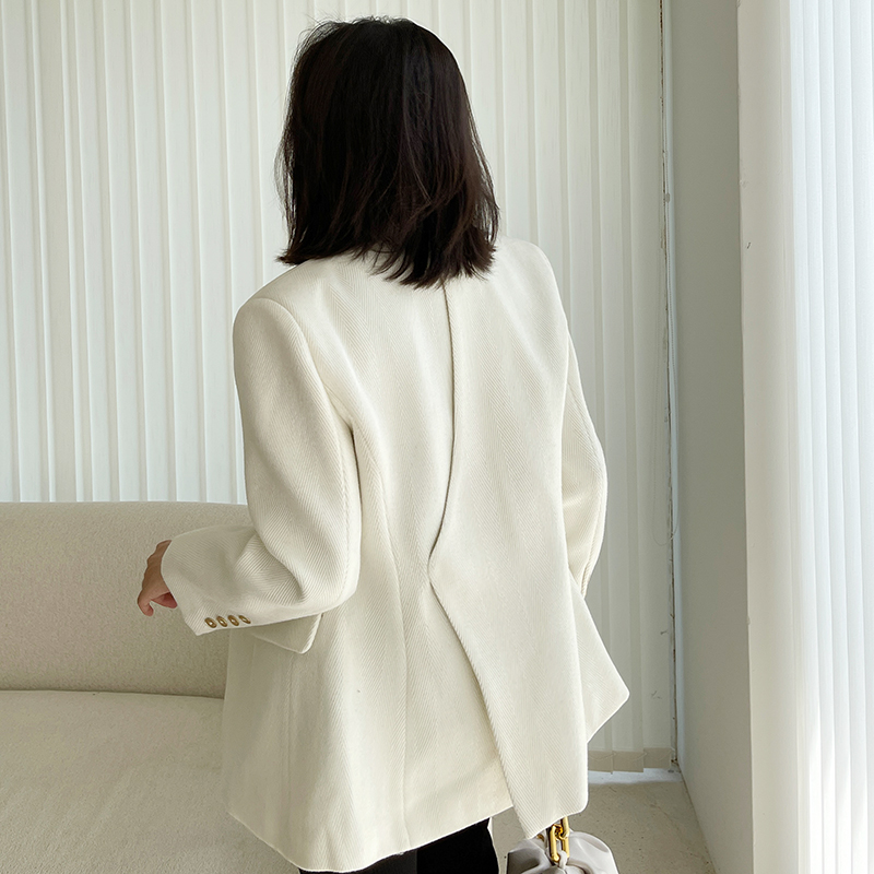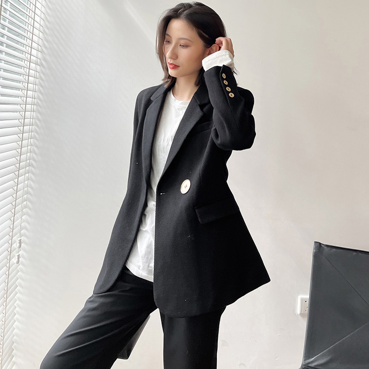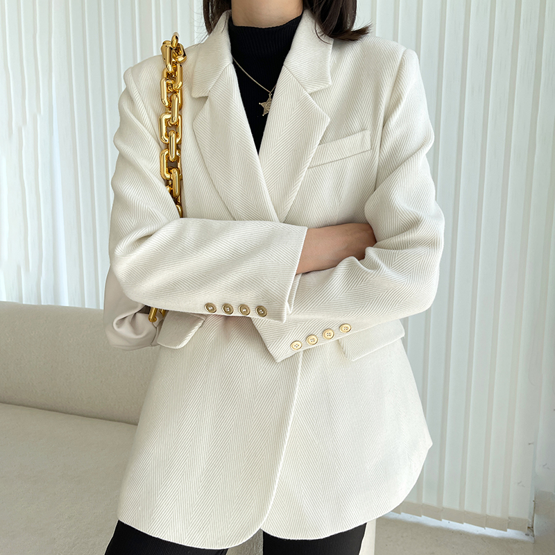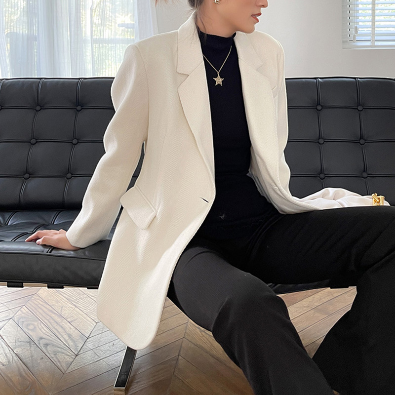 Women's Wool Blazer Suit Oversize Autumn Jacket Off White Suit Black Twill Wool Blazers Office Lady Wear Business Suit Outwear #1094