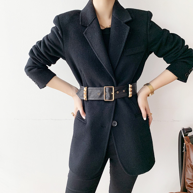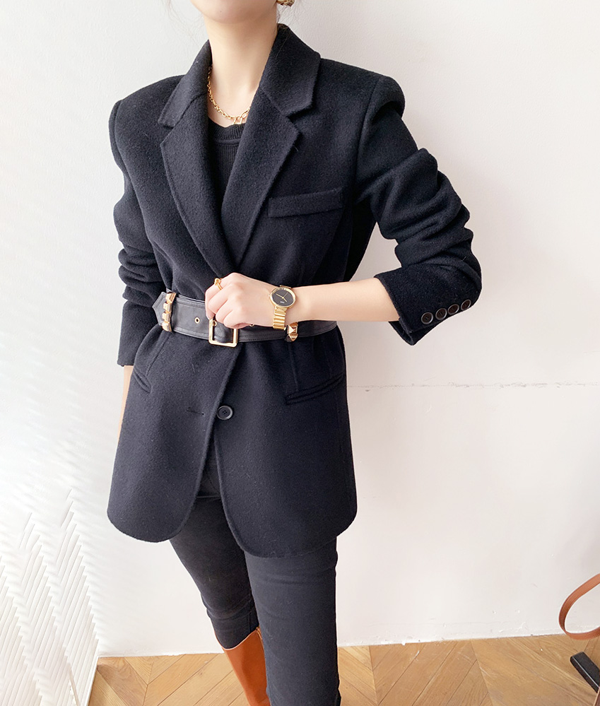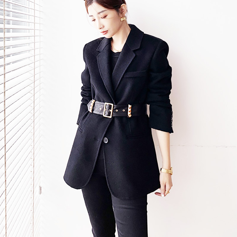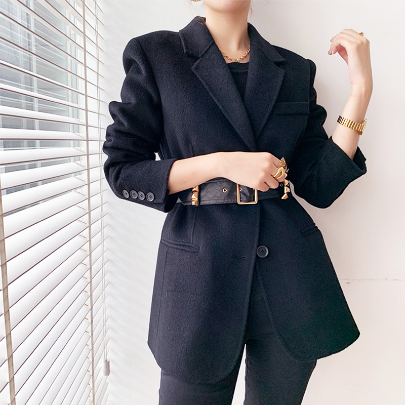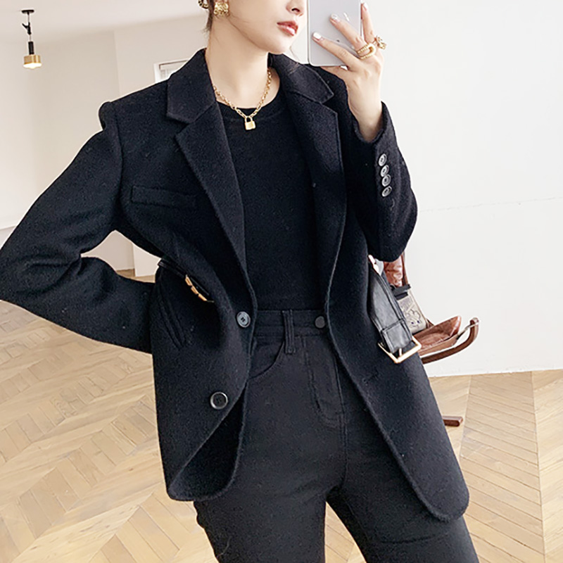 Women Black Wool Coats Notch Lapel Slim Woolen Thick Suit Jacket Office Lady Warm Coat Outwear Female Wool Blazer Coat #1096