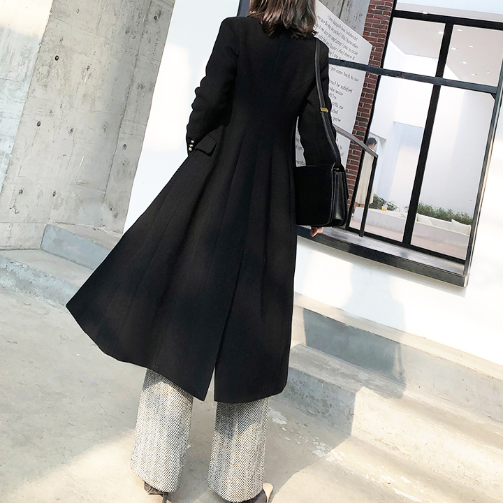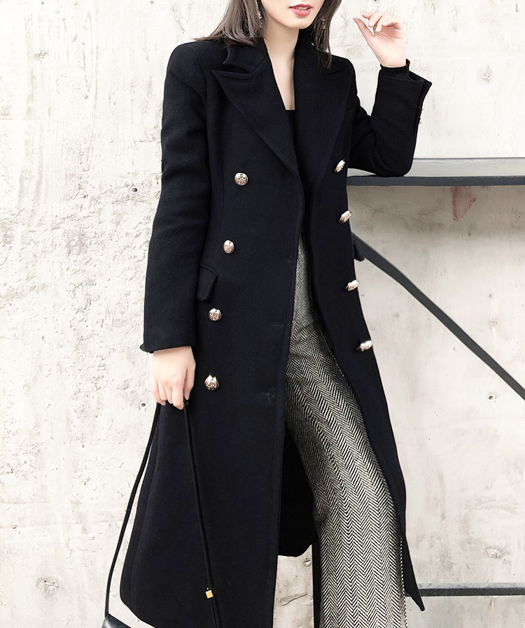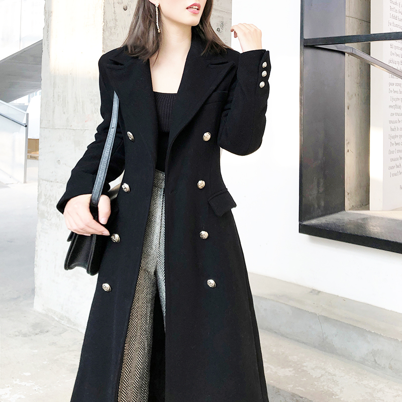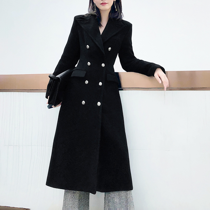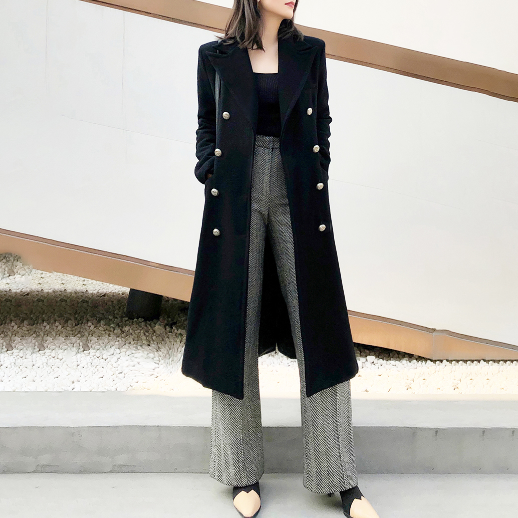 Women Black Long Wool Coat Winter Warm Woolen Coat Chic Thick Woolen Black Wool Coat Double Breasted Wool Long Coats Outwear #1107