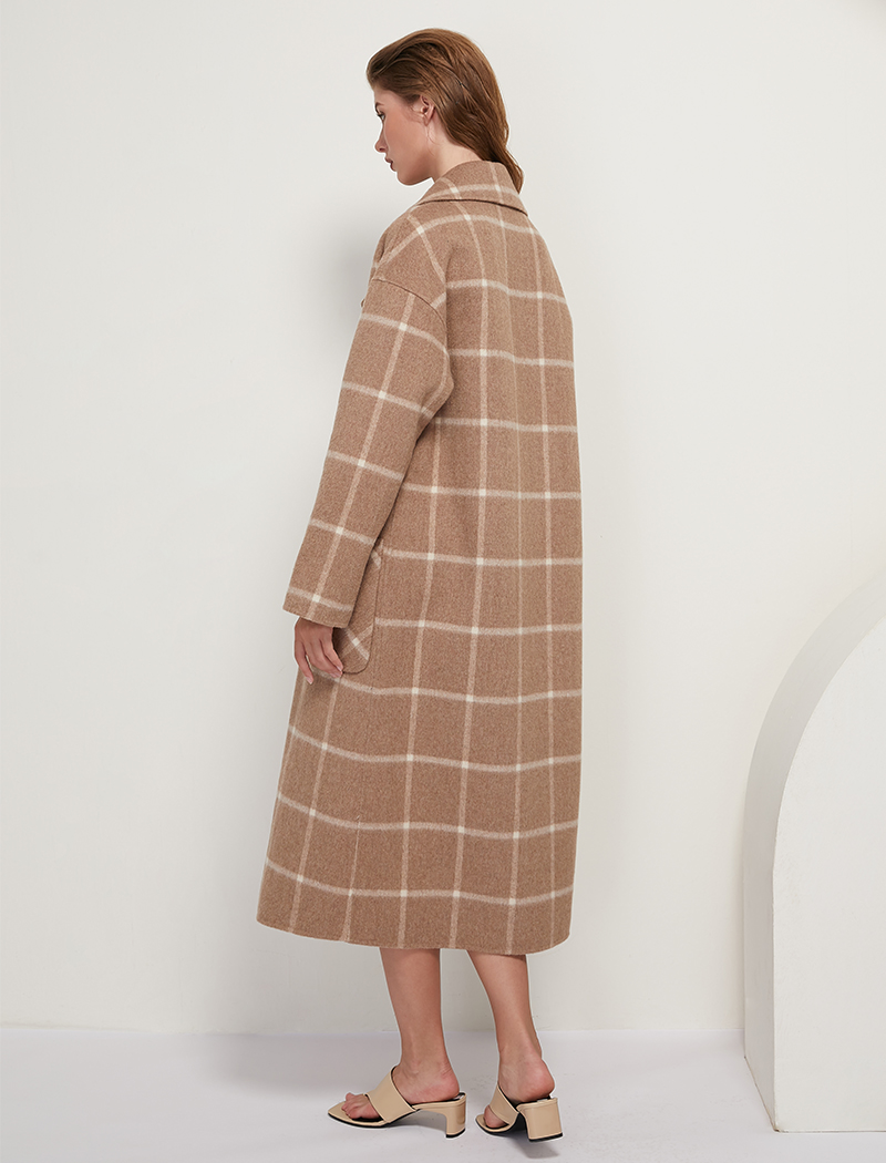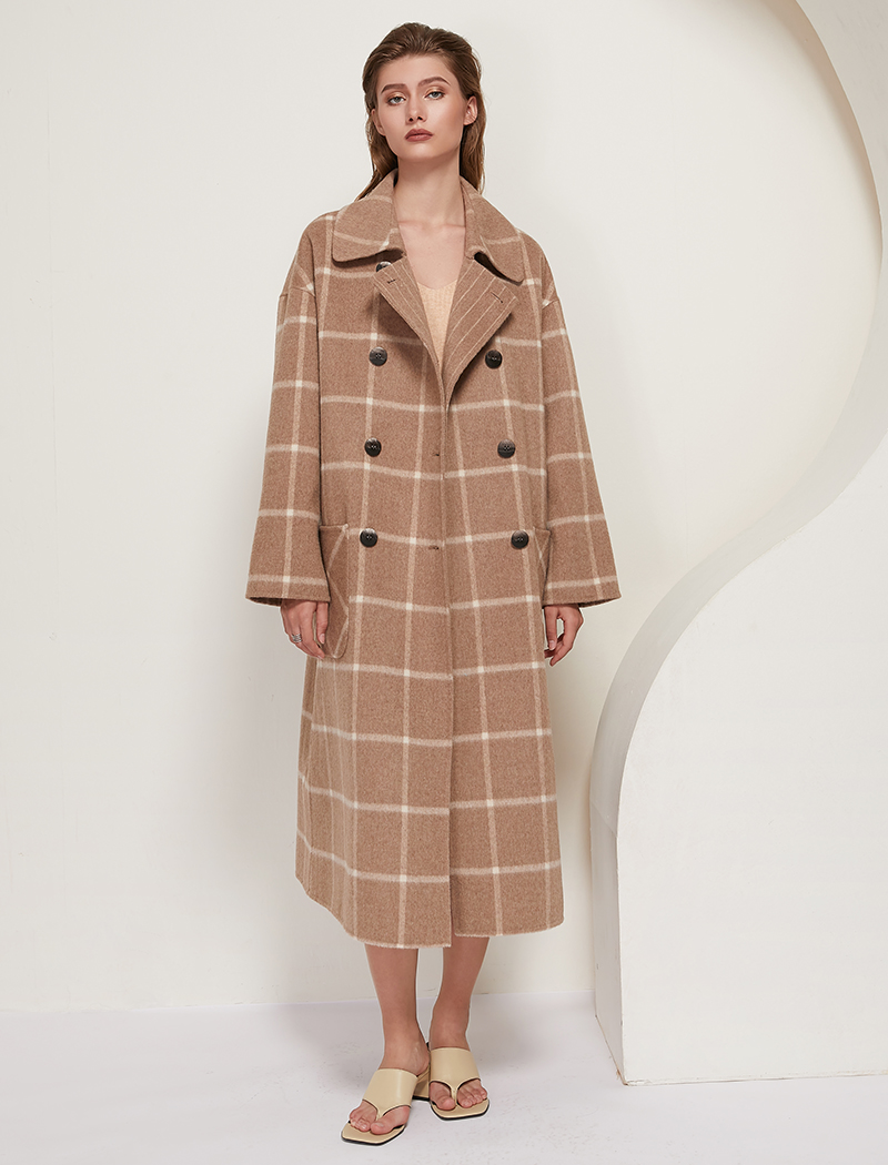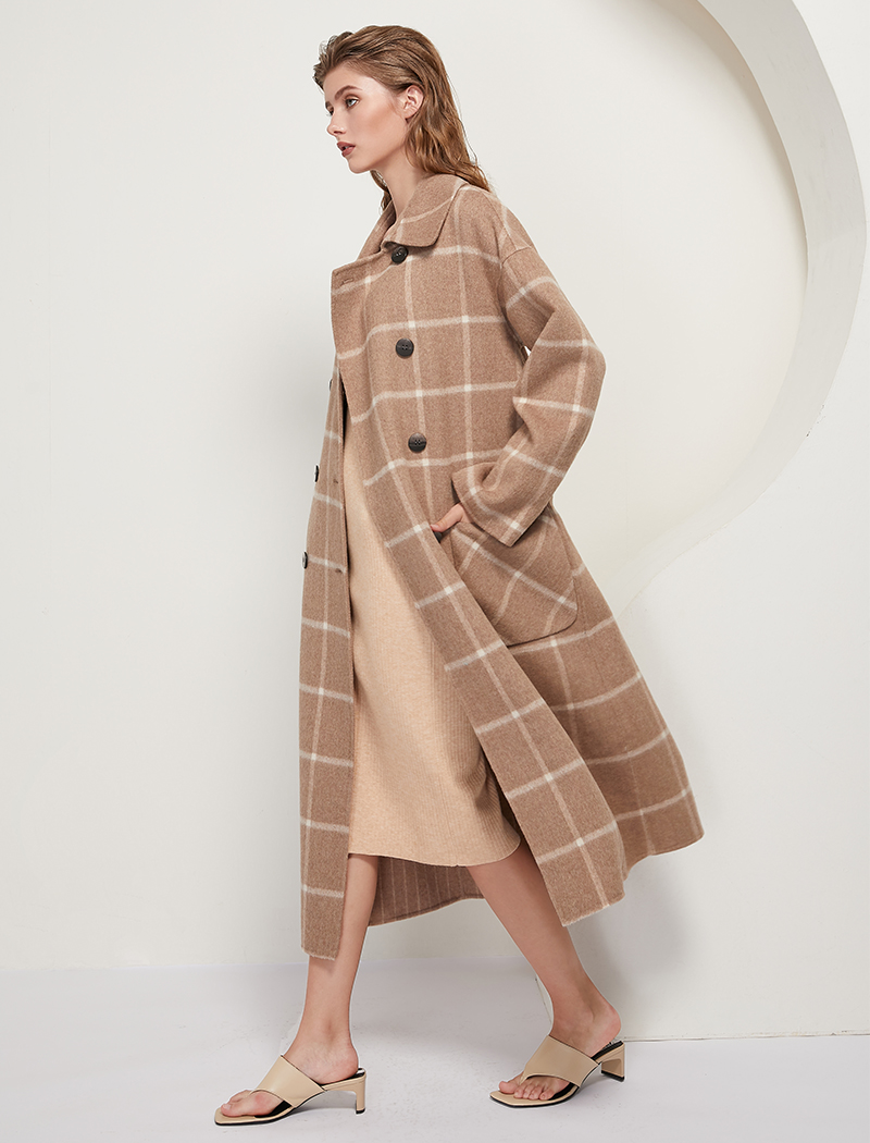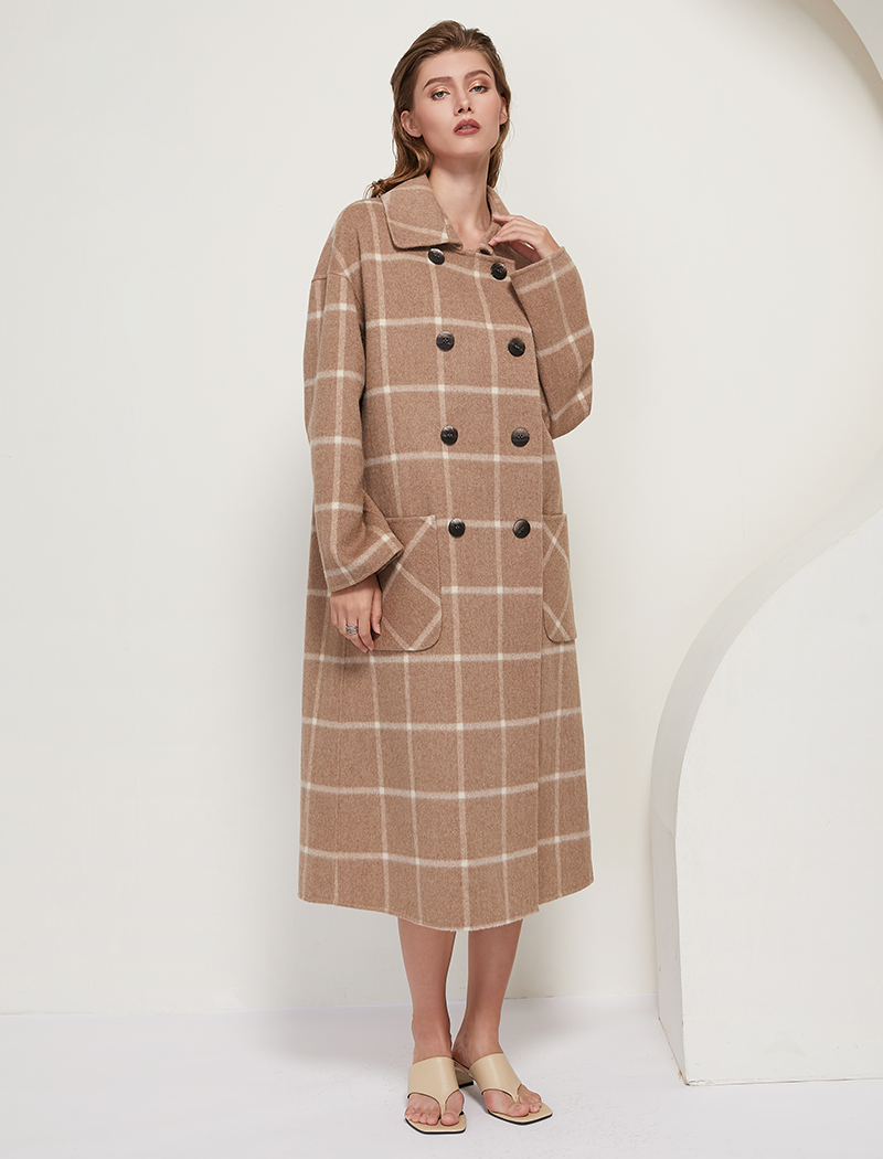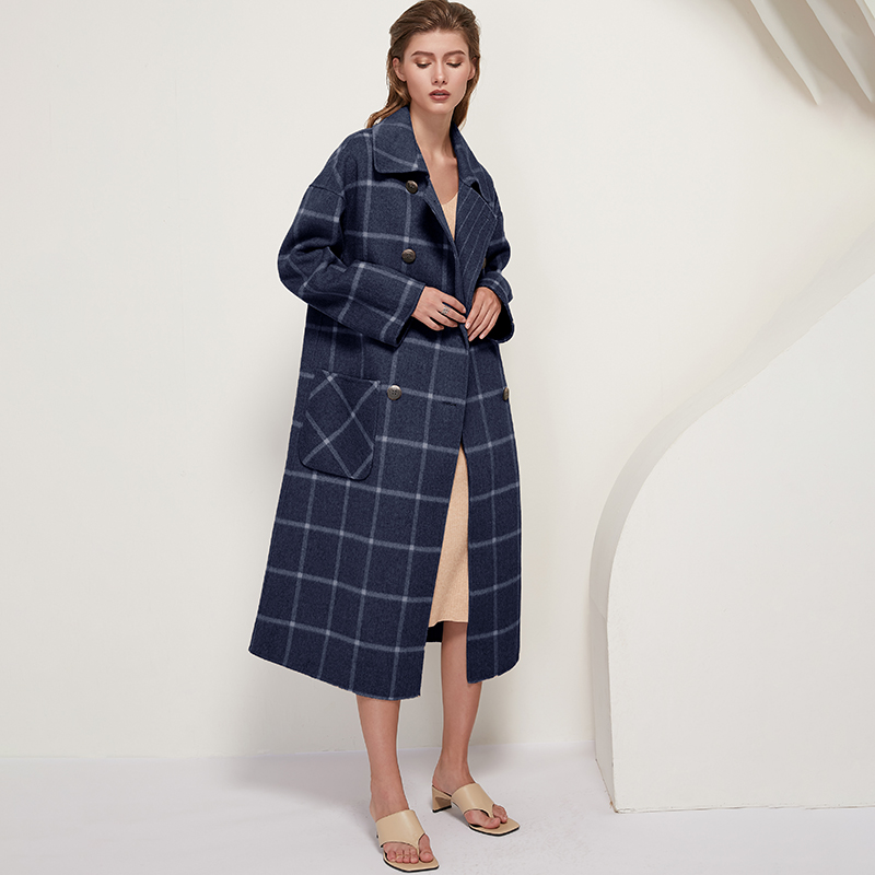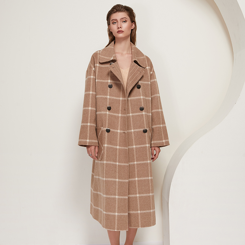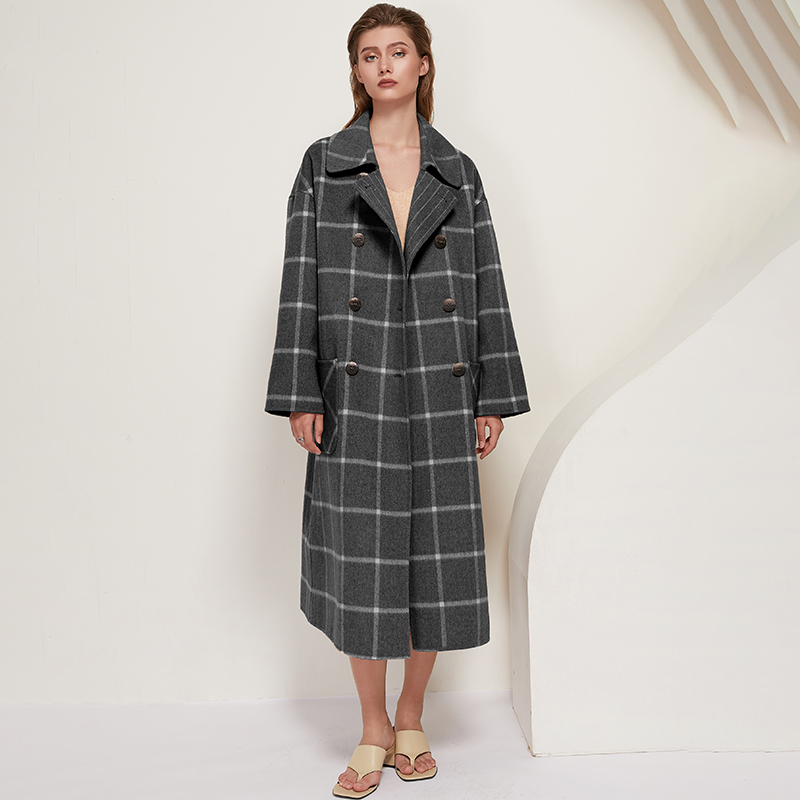 Women Plaid Wool Long Coat Oversize Double Breasted Wool Overcoat Female Long Sleeve Wool Coats #1132