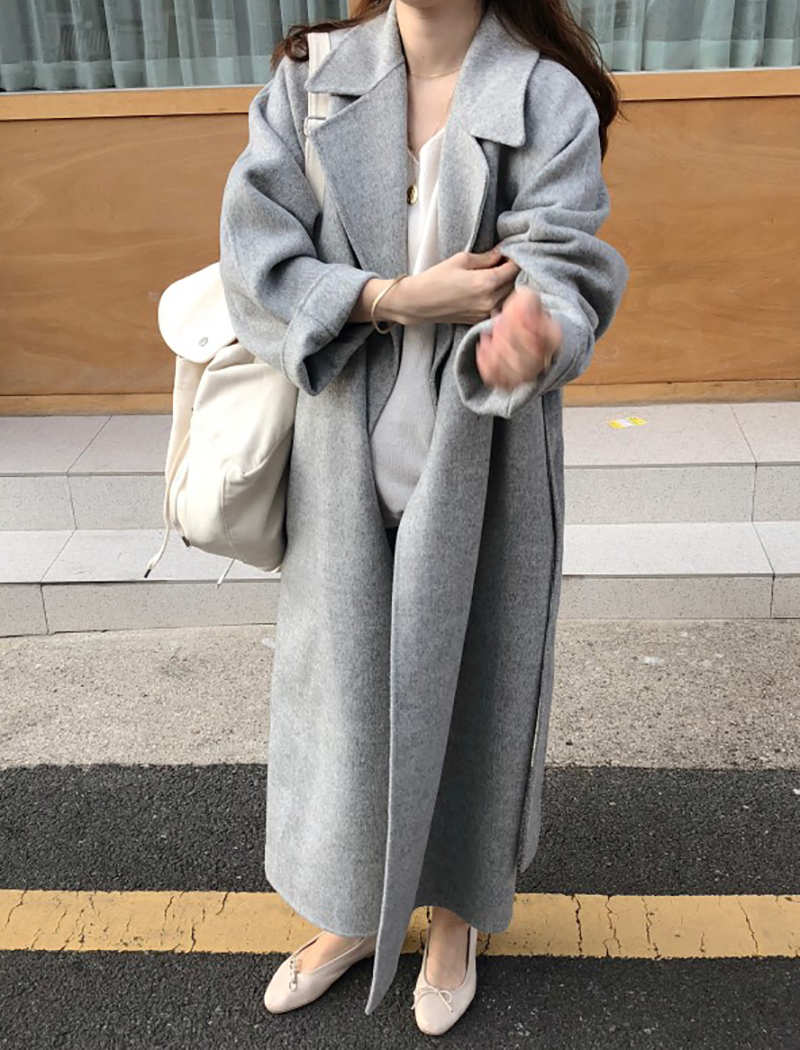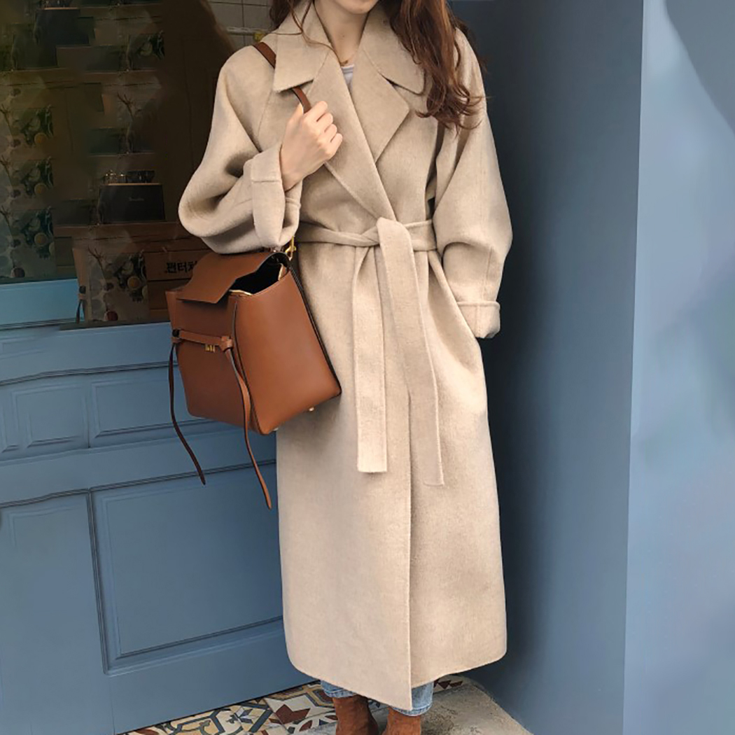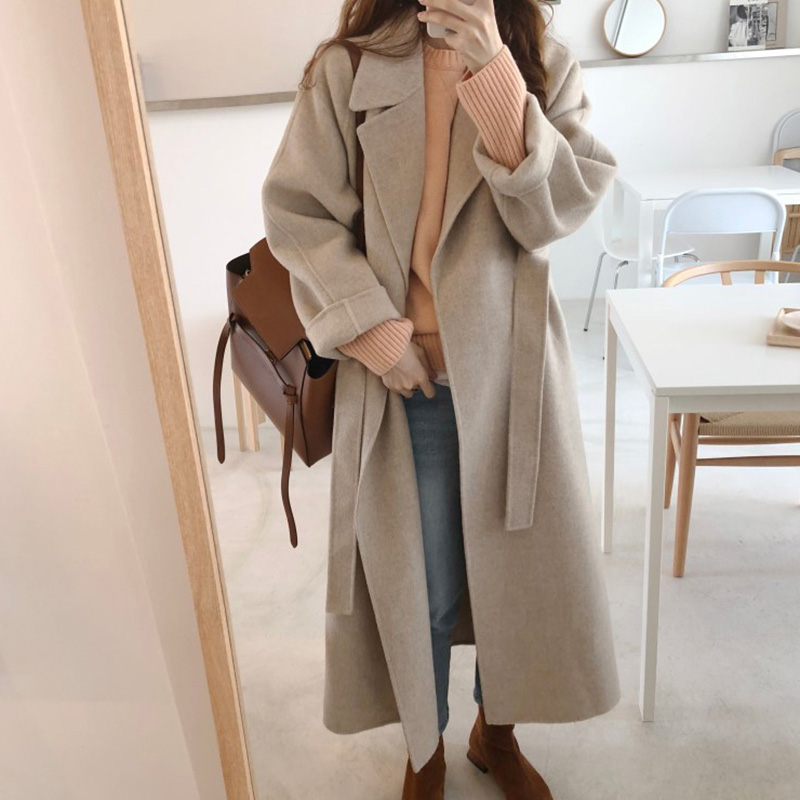 Women Beige Long Wool Coat Free Size Woolen Coat Wrap Wool Coat Oversize Wool Coats Gray Long Wool Overcoat Female Autumn Winter Outerwear #1136