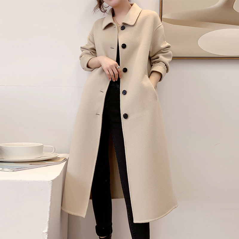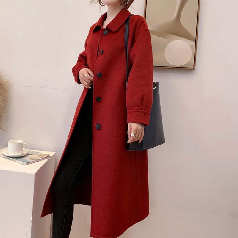 Women Single Breasted Long Wool Coats Office lady Turn Down Collar Woolen Coat Long Sleeve Wool Overcoat Female Winter Coat #1139