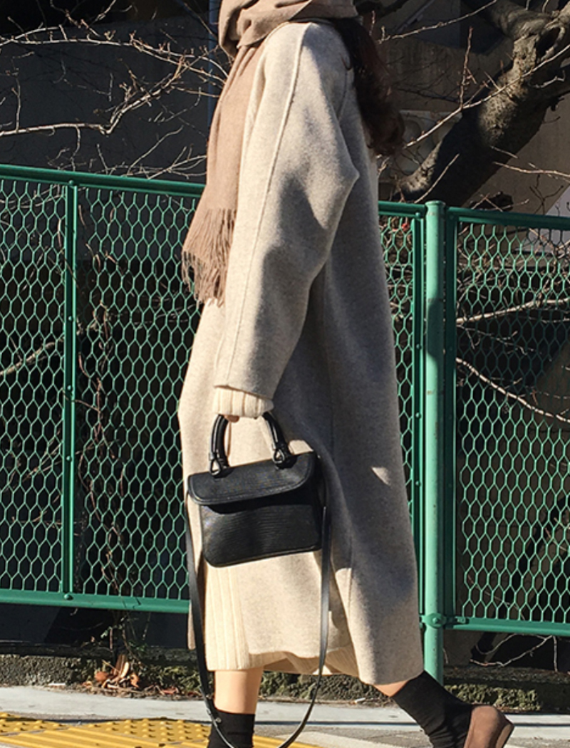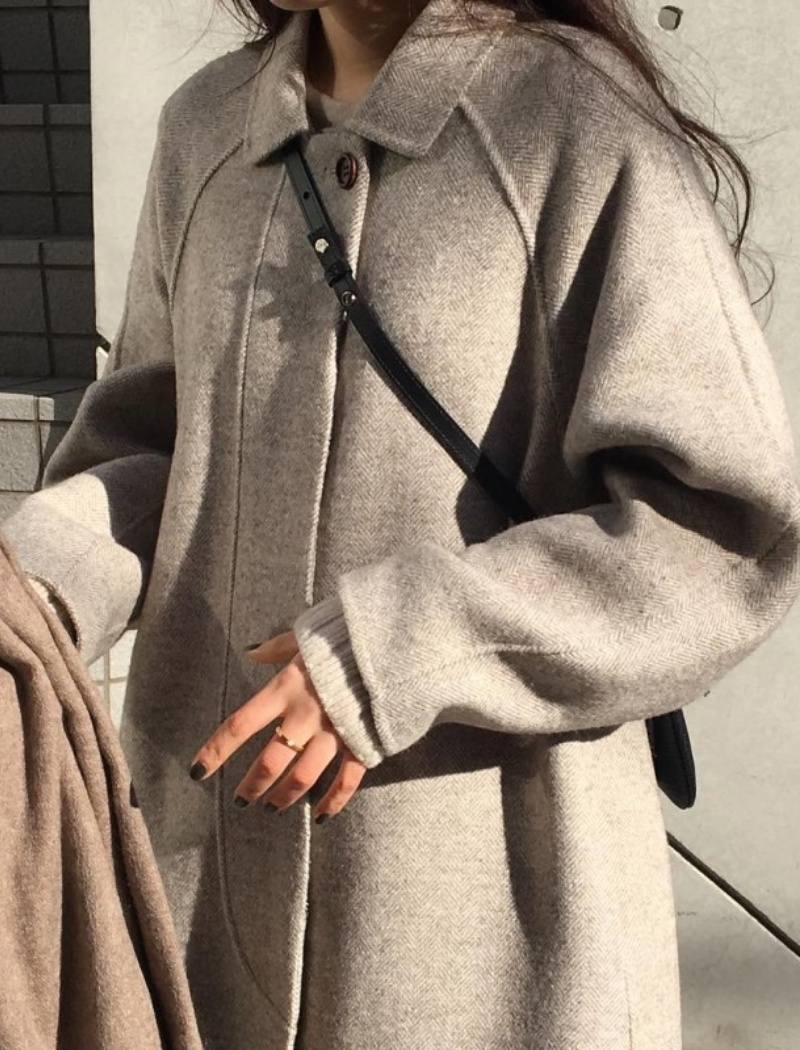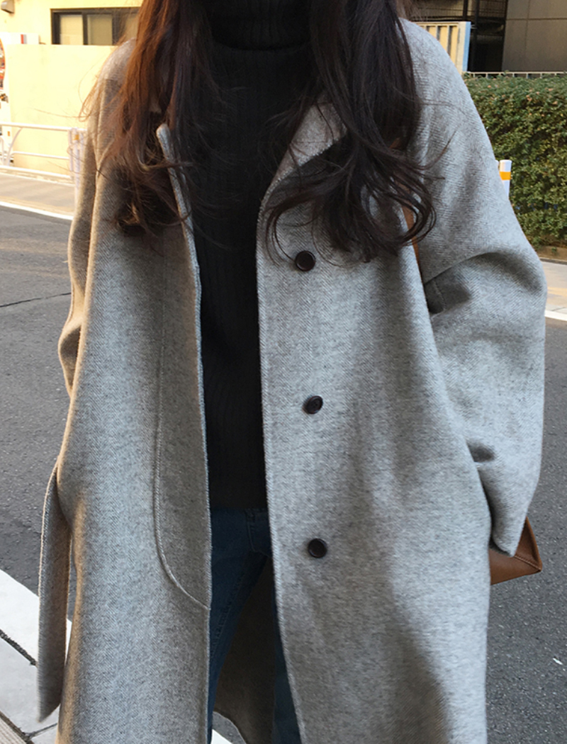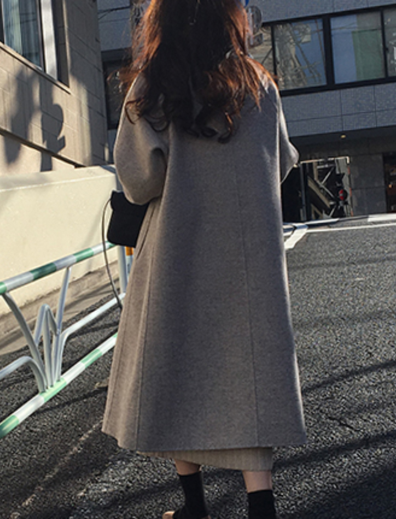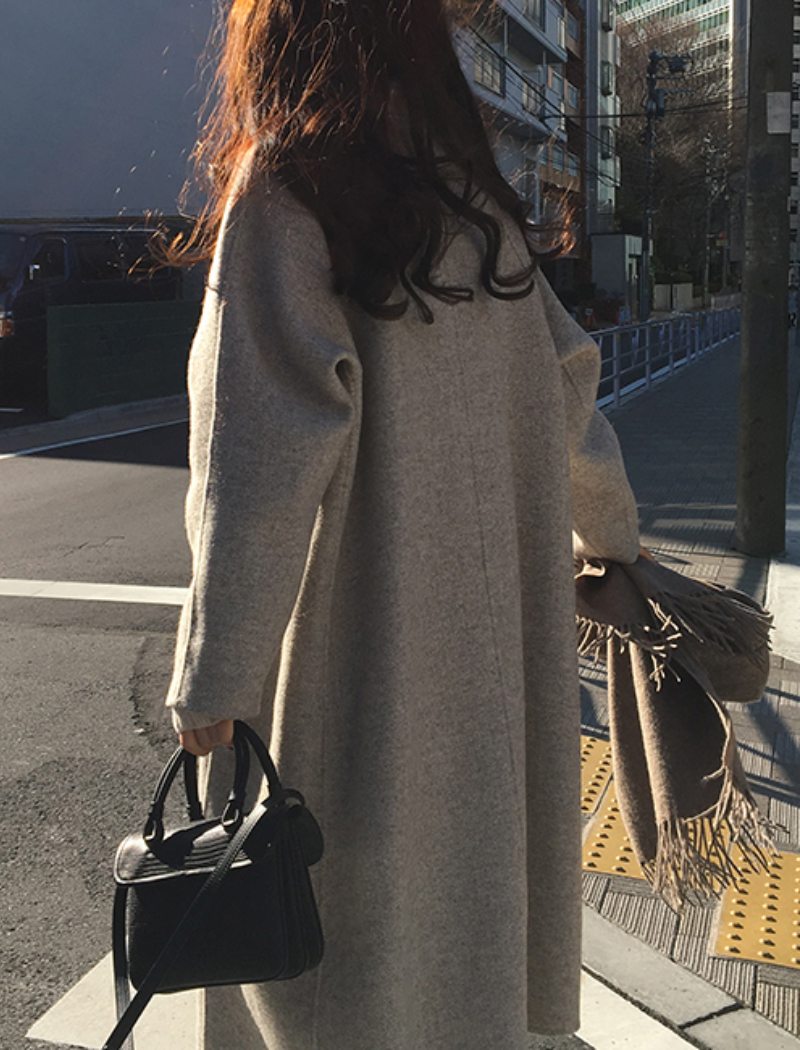 Women Autumn Winter Long Wool Coat With Belt Turn Down Collar Long Sleeve Big Pocket Loose Outerwear Autumn Winter Coat #1143
