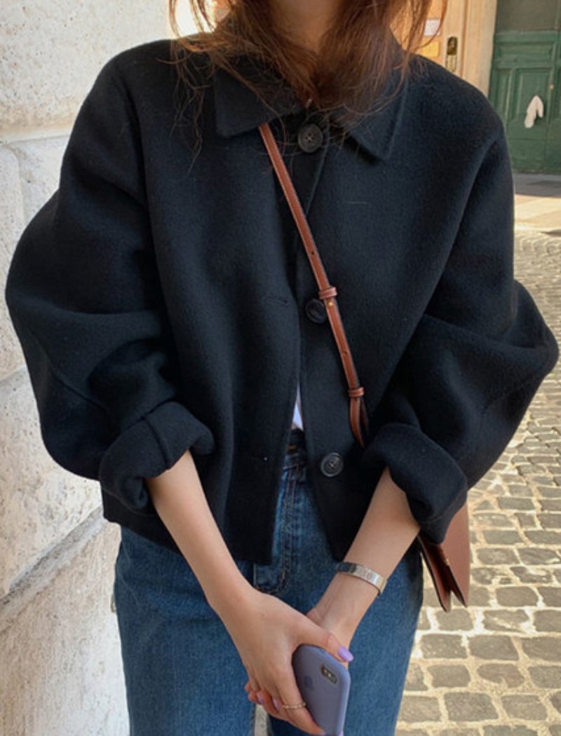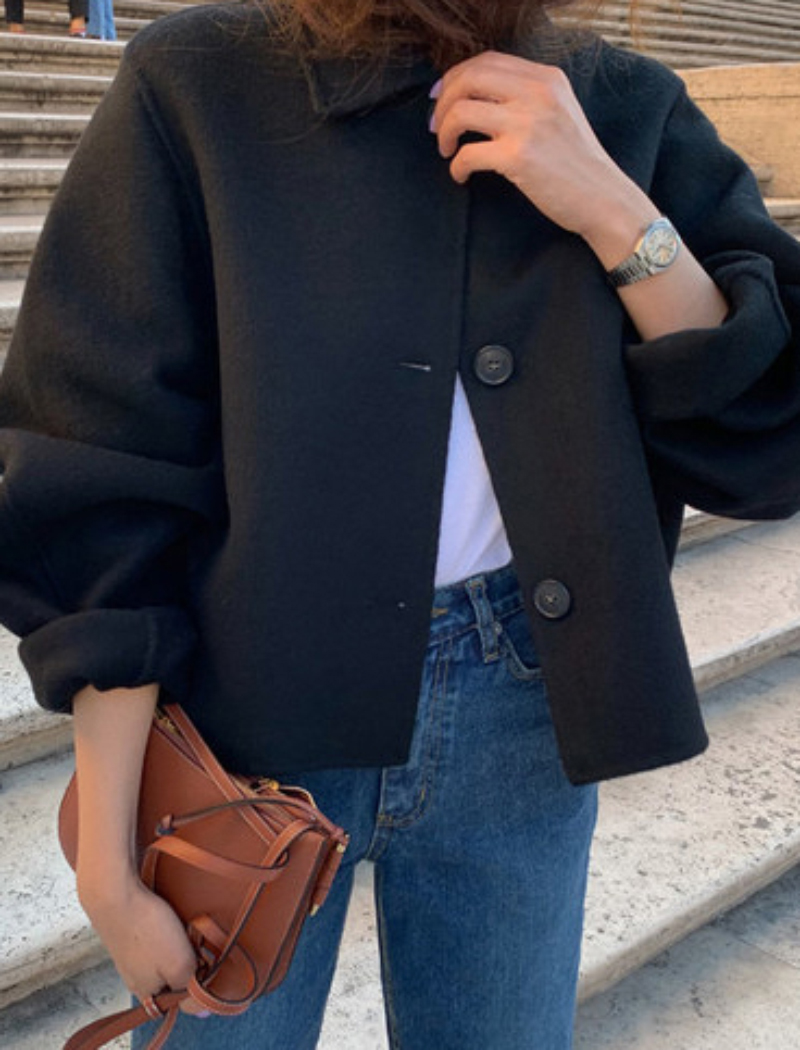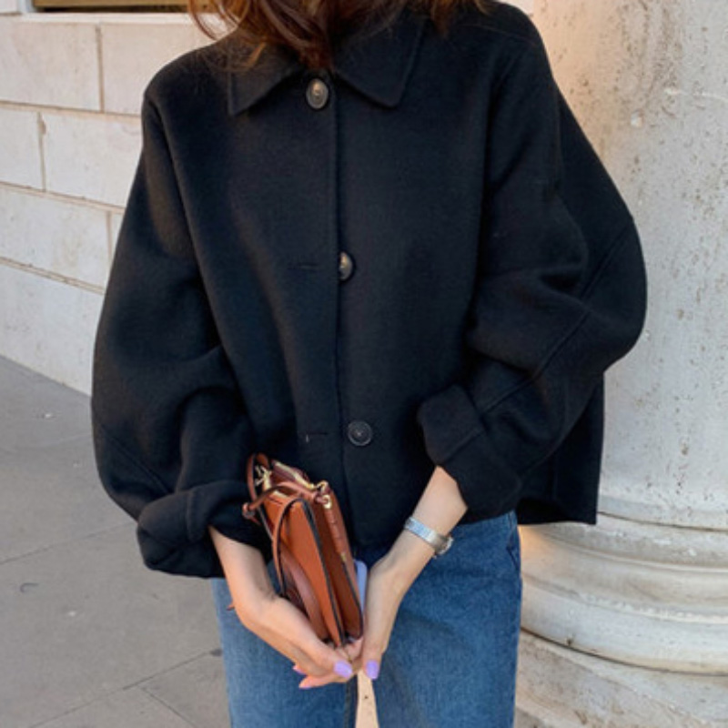 Women Solid Wool Jacket Coat Black Woolen Coat Khaki Wool Coat Autumn Winter Woolen Coat Oversize Jacket #1150