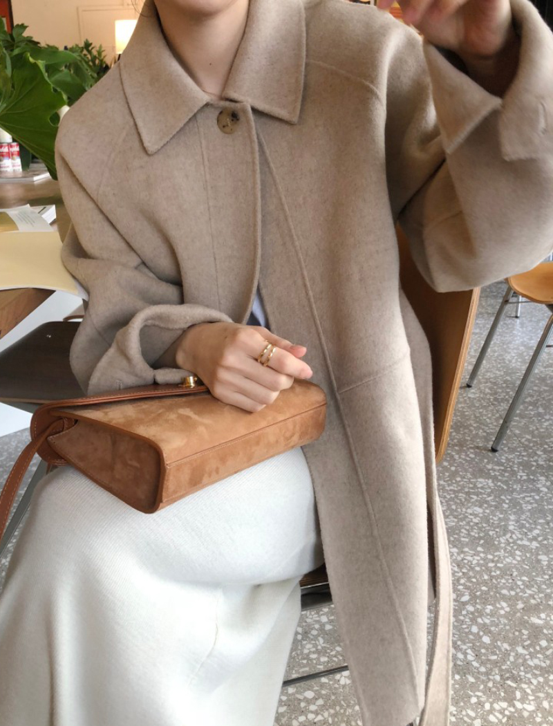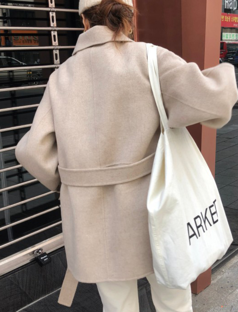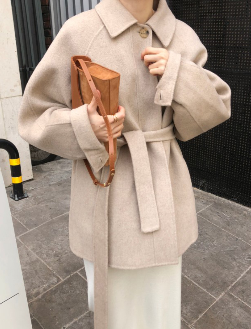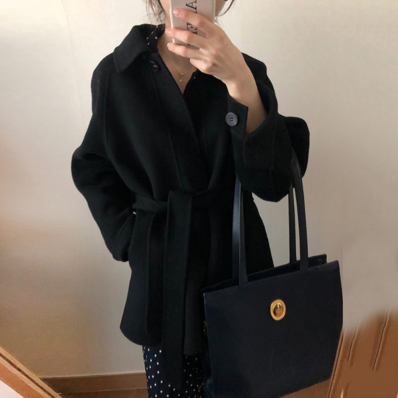 Women Turn Down Collar Wool Coat Beige Long Sleeve Coats Black Single Breasted Wool Coat Female Wool Jacket Autumn Winter Outerwear #1153