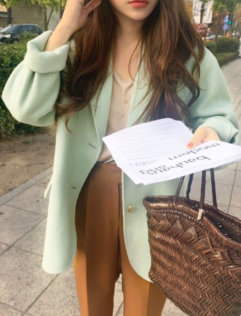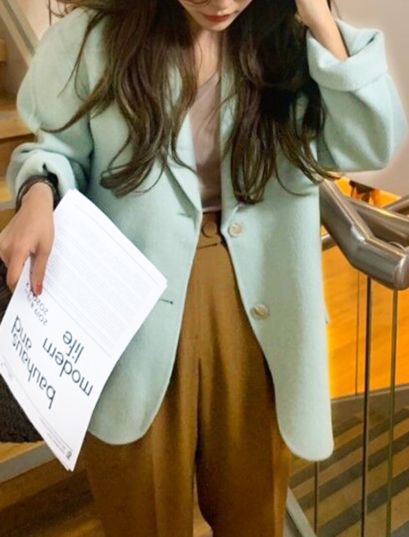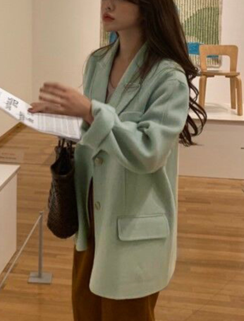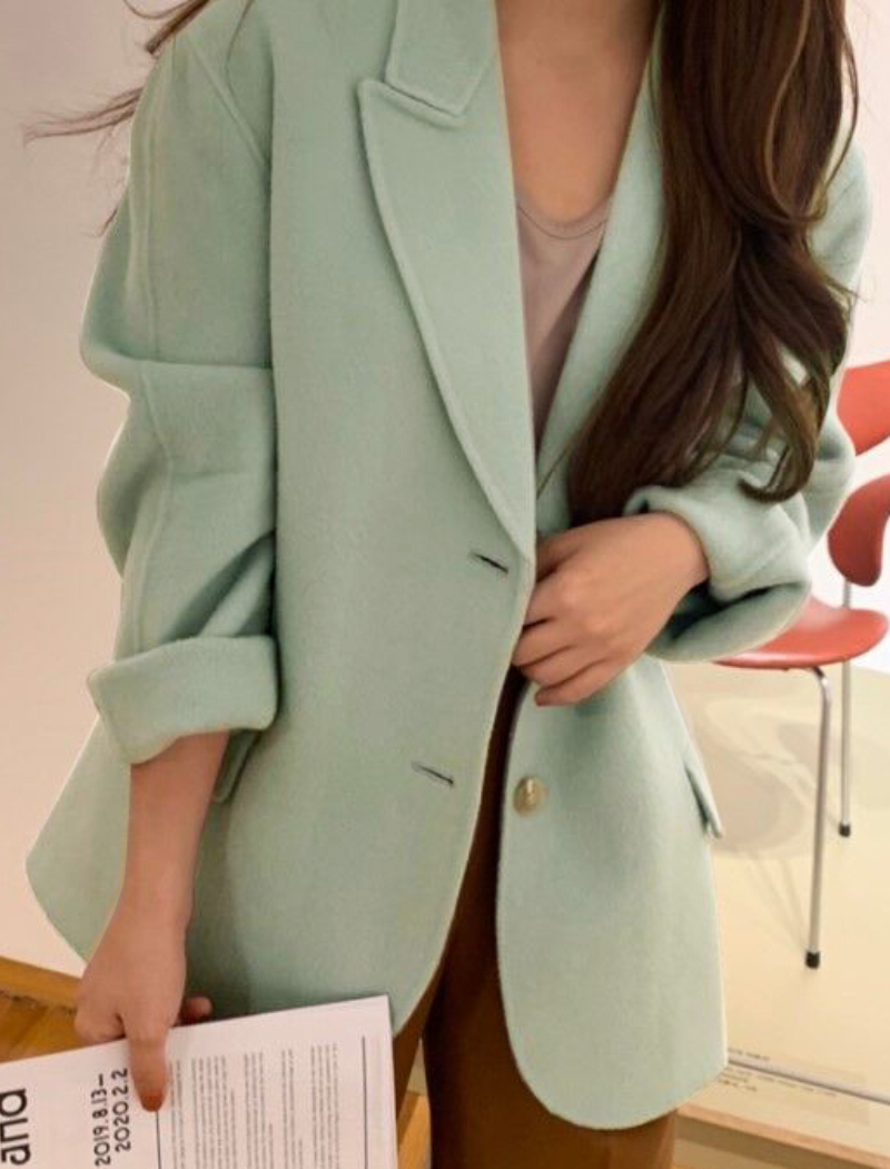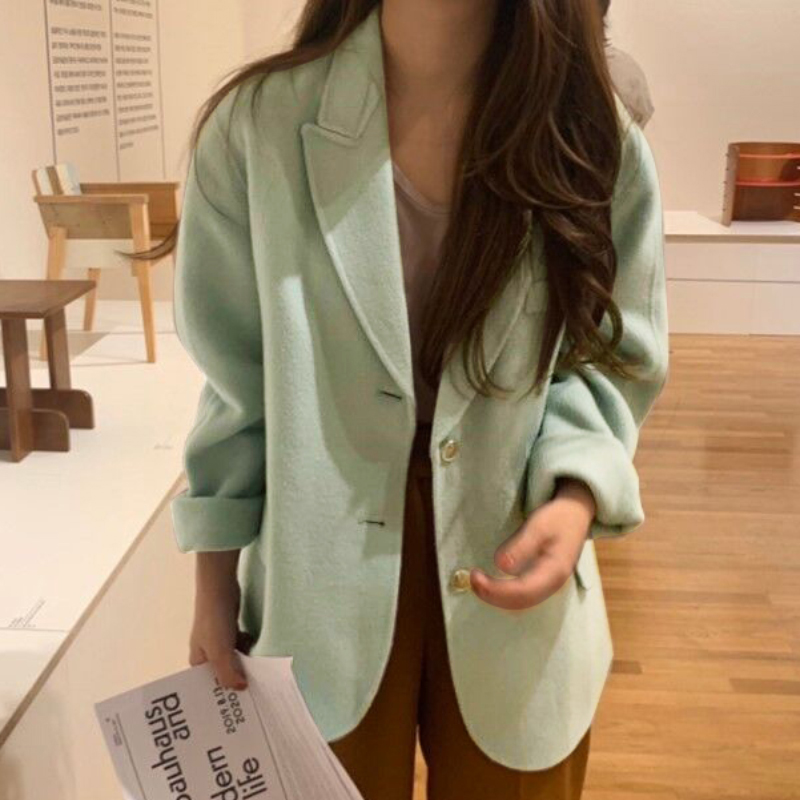 Women Green Wool Blazer Coats Long Sleeve Suit Single Breasted Jacket Coat Autumn Suit Winter Blazer Coat Outerwear #1154