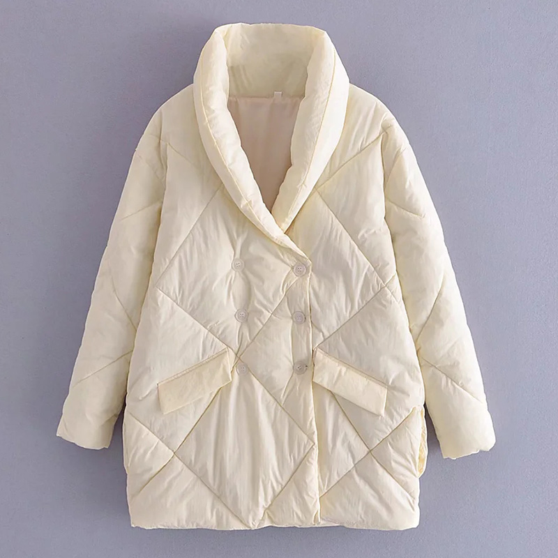 Women's Off white Parka Coats Single Breasted Blazer Jacket Beige Oversize Quilted Puffer Coats Ladies Loose Warm Winter Blazer Coat Outerwear #1161