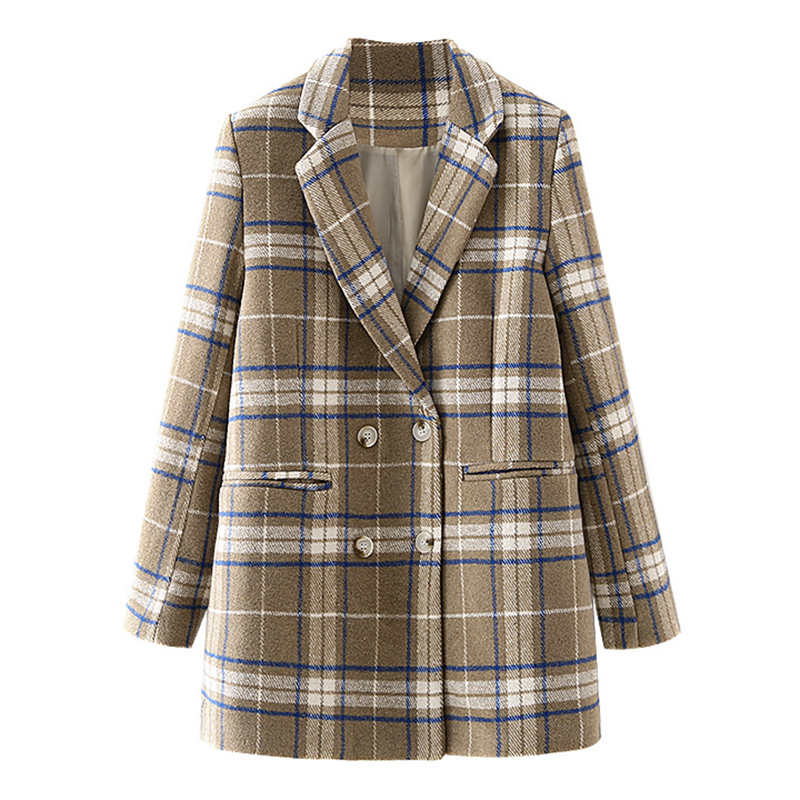 Women Vintage Plaid Blazer Suits Notched Collar Coat Long Sleeve Suit Coats Office Lady Blazer Fashion Chic Suit Outerwear #1164
