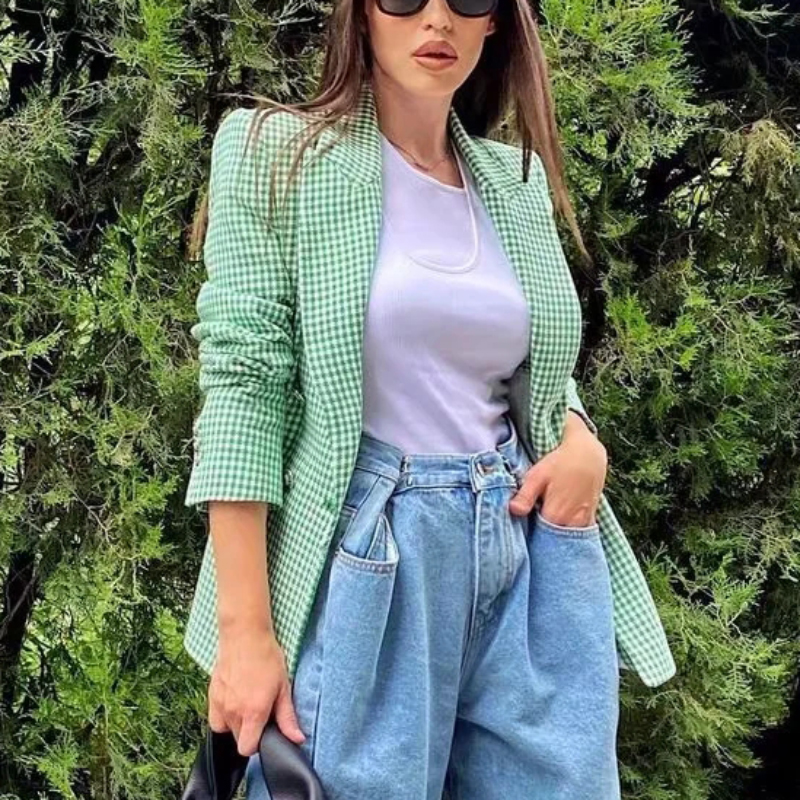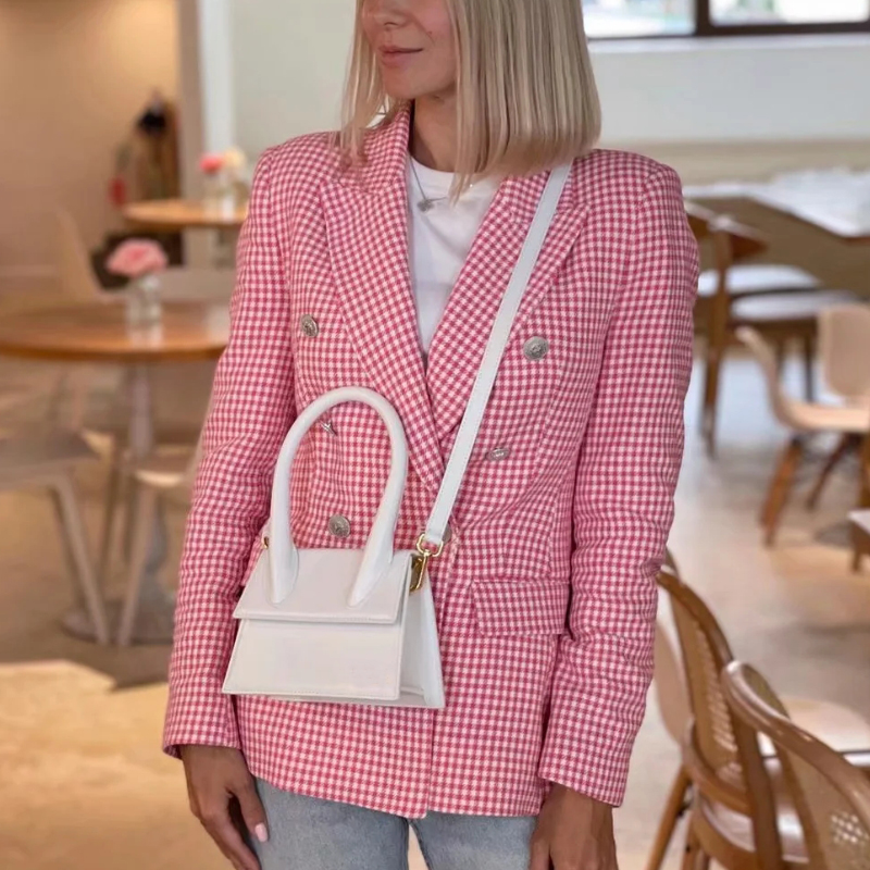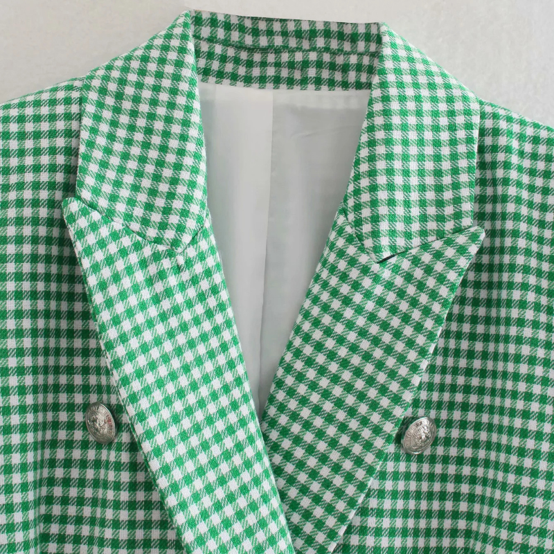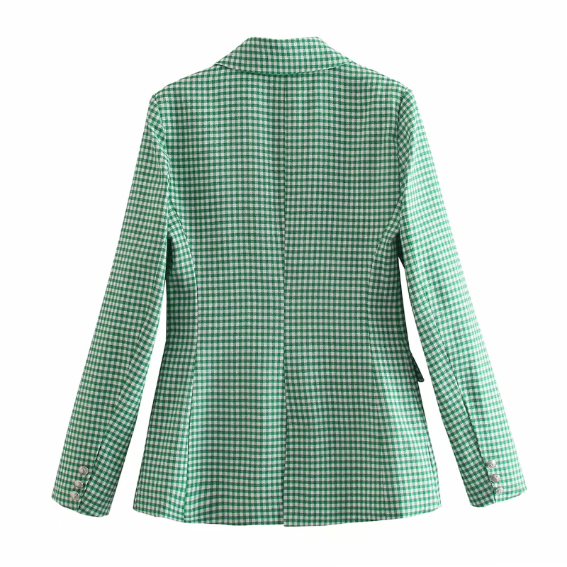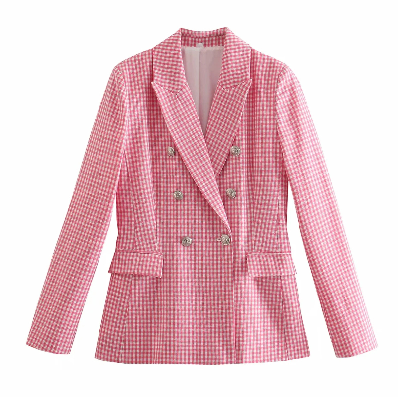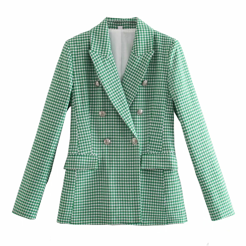 Women Vintage Plaid Tweed Blazers Autumn Elegant Double Breasted Long Sleeve Jacket Coats Female Office Wear Blazer Suit #1167