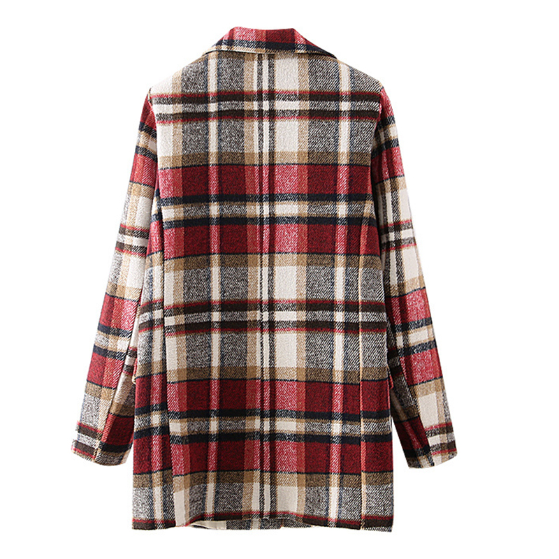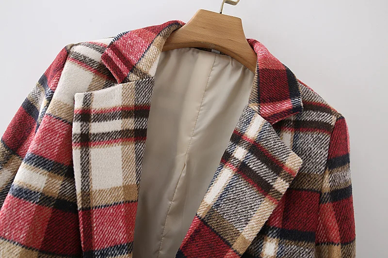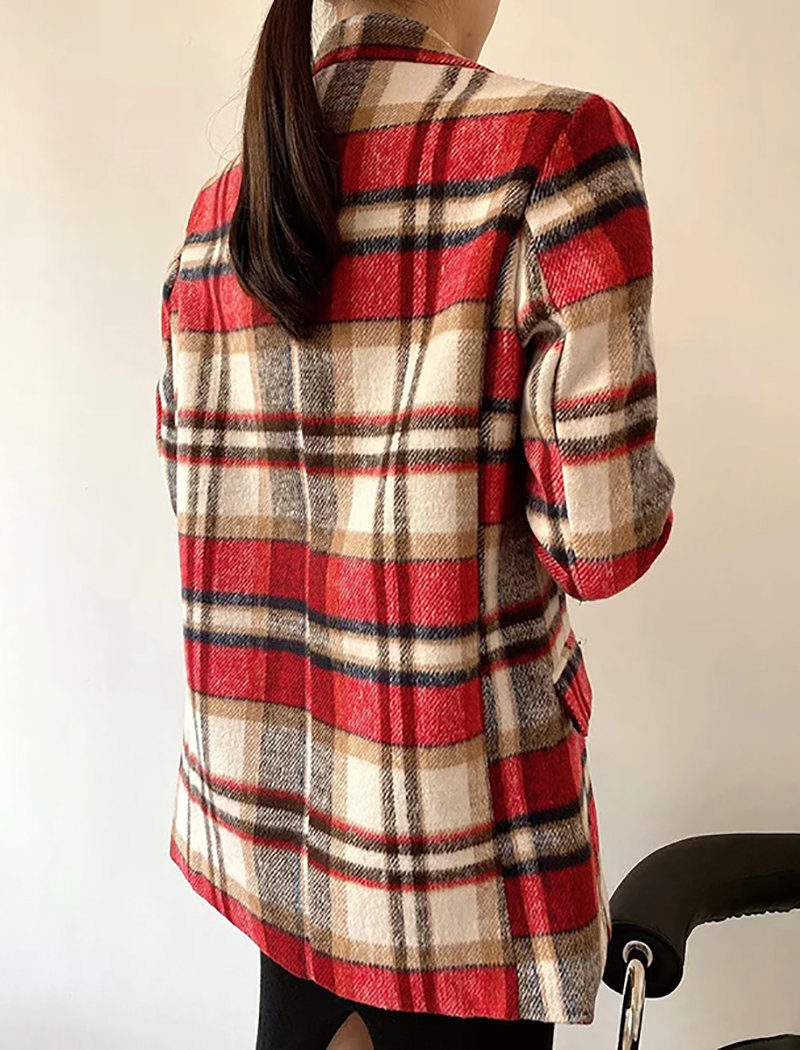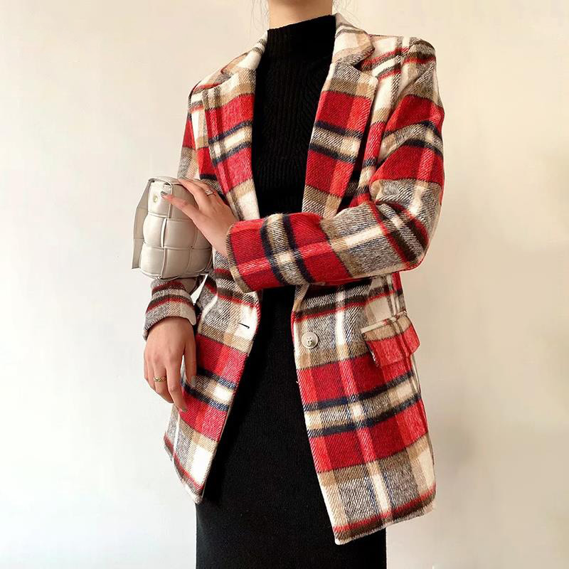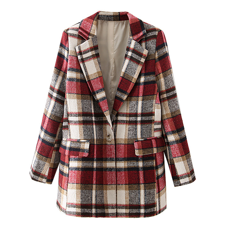 Women Black Red Plaid Blazer Coat Single Button Suit Long Sleeve Jacket Coats Female Vintage Notched Collar Blazers #1169