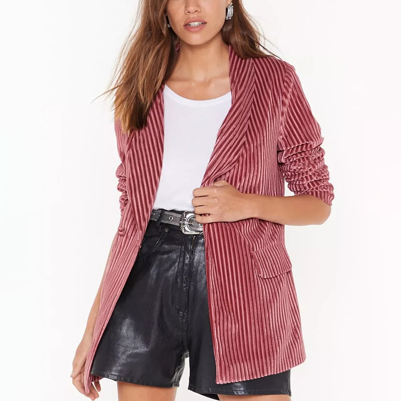 Women's Corduroy Blazer Coat Deep Pink Suit One Button Blazer Jacket Oversize Blazer Suit Wedding guest suit Autumn Spring Outerwear #1175