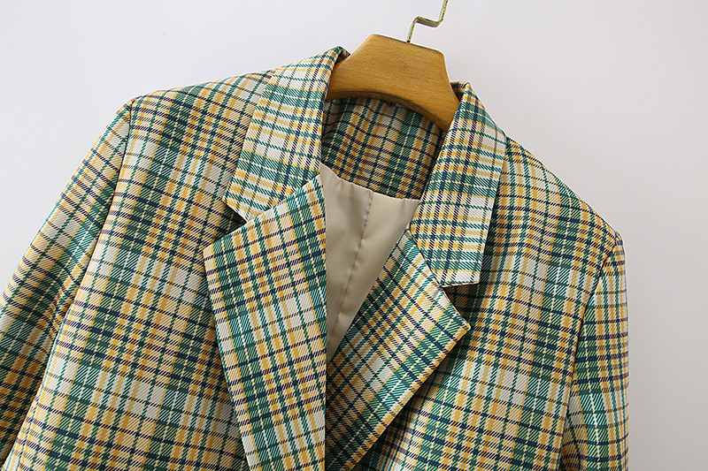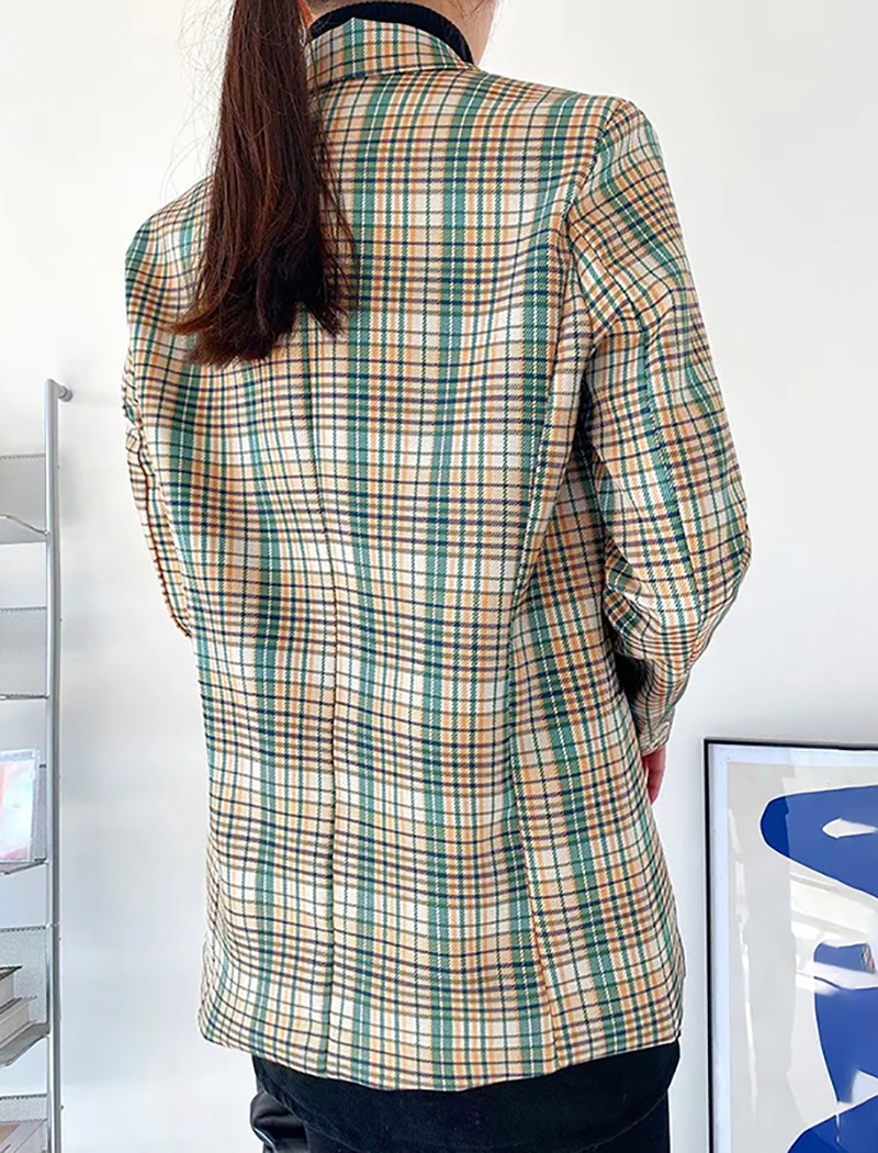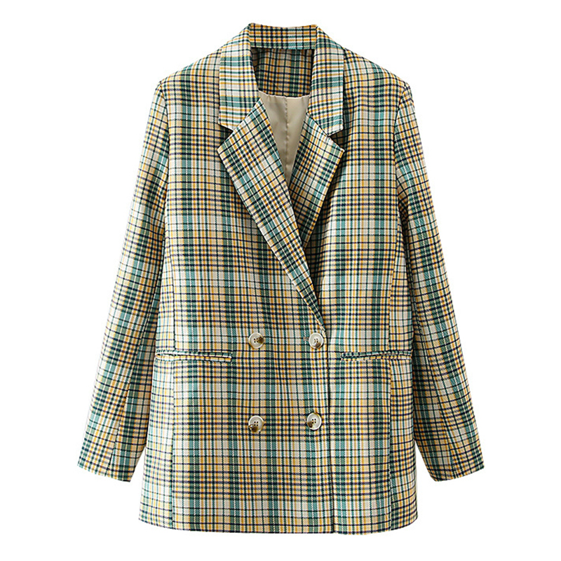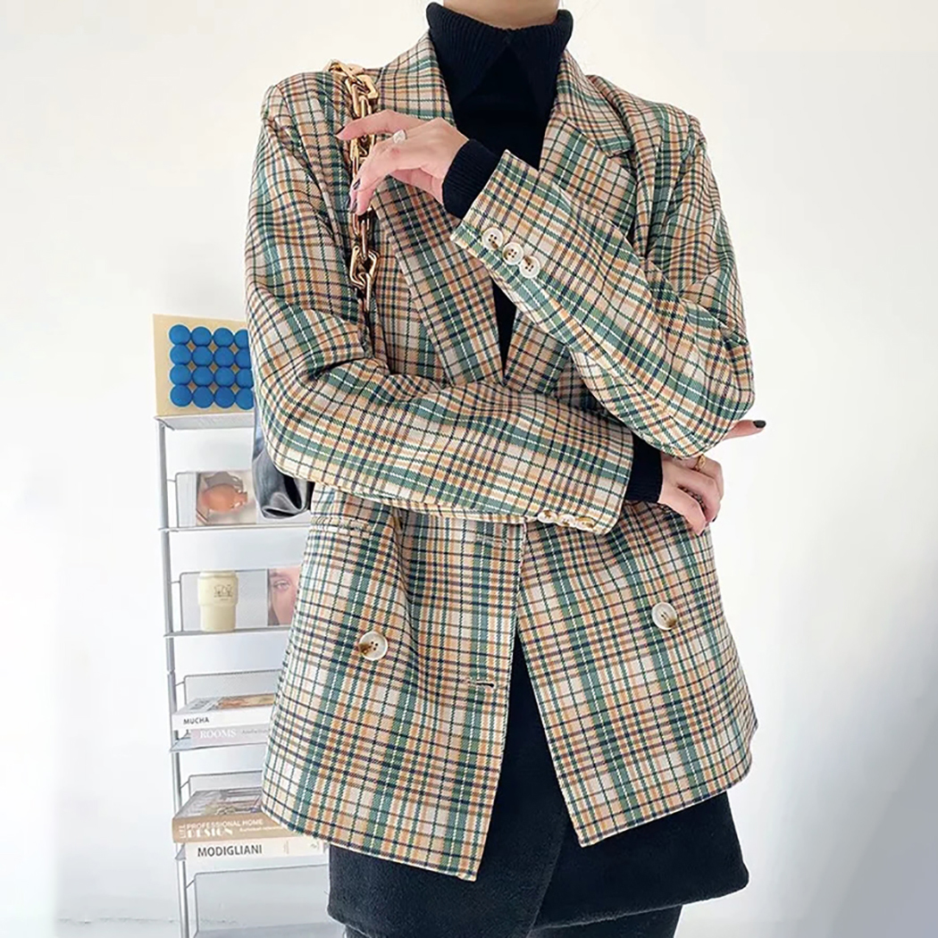 Women Chic Plaid Blazer Loose Suit Coat Notched Collar Long Sleeve Blazer Suits Female Coat Office Wear Outerwear #1176