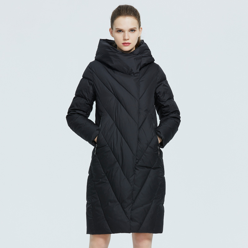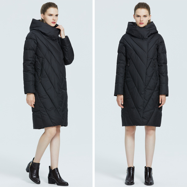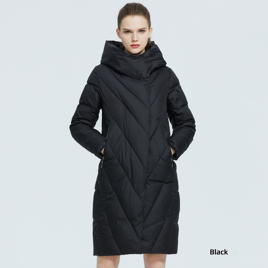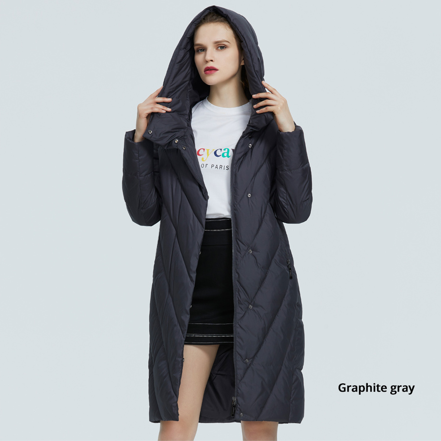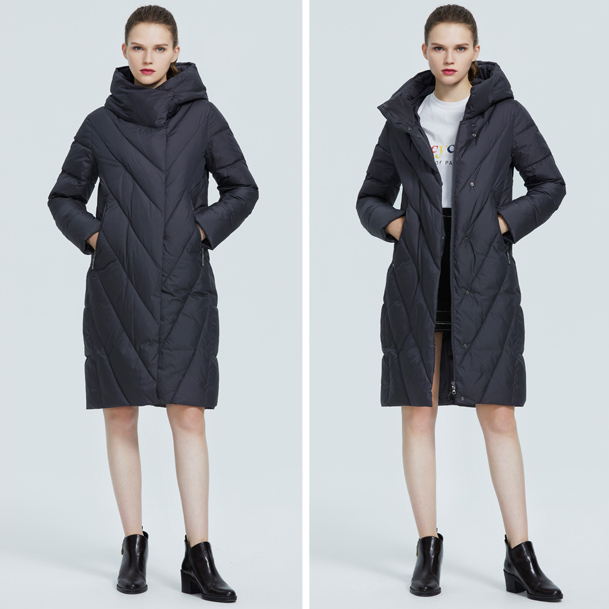 Women Black Hooded Puffer Coat Dark Gray Quilted Padded Parkas Coats Female Puffy Coat Winter windproof Jacket Outerwear #1209