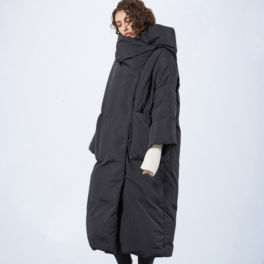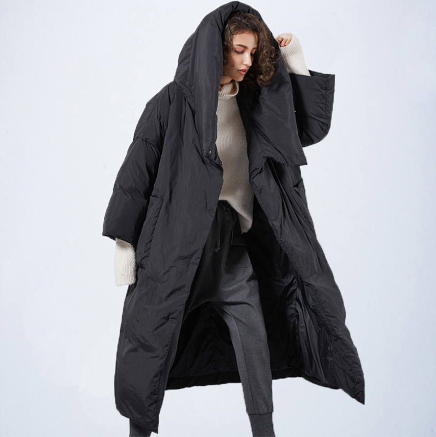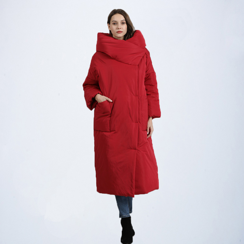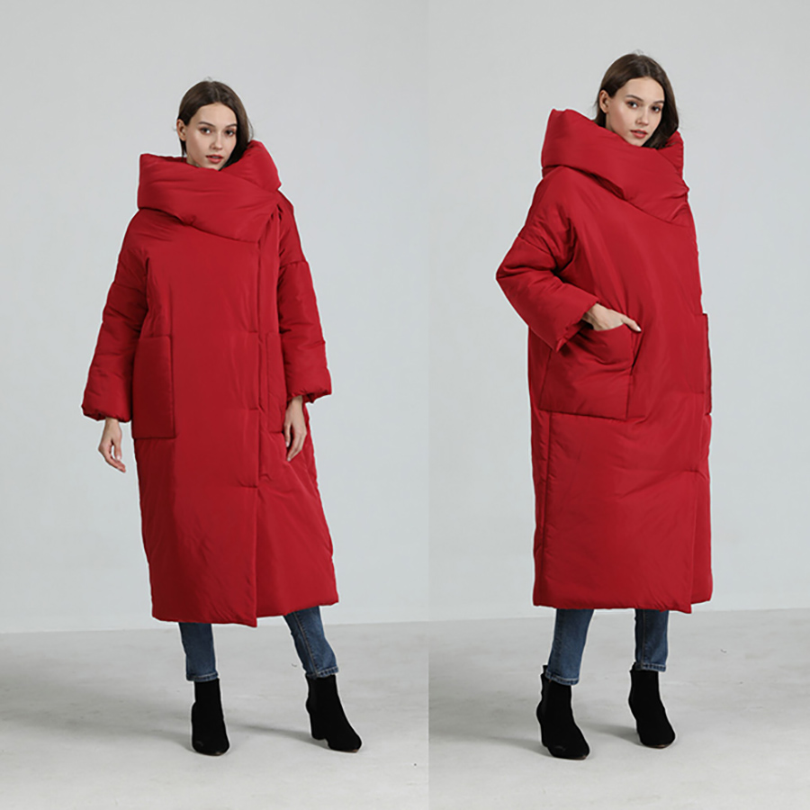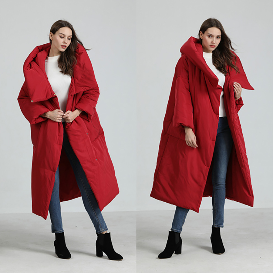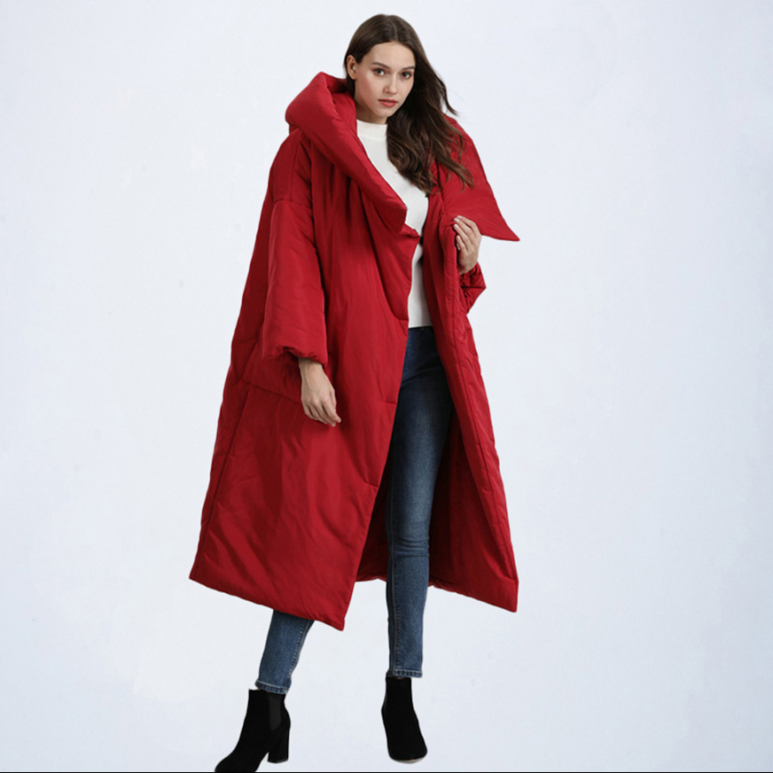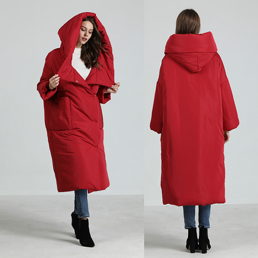 Women Black Windproof Puffer Coat Red Oversize Quilted Padded Parkas Coats Female Puffy Coat Winter Long Coat Outerwear #1210
